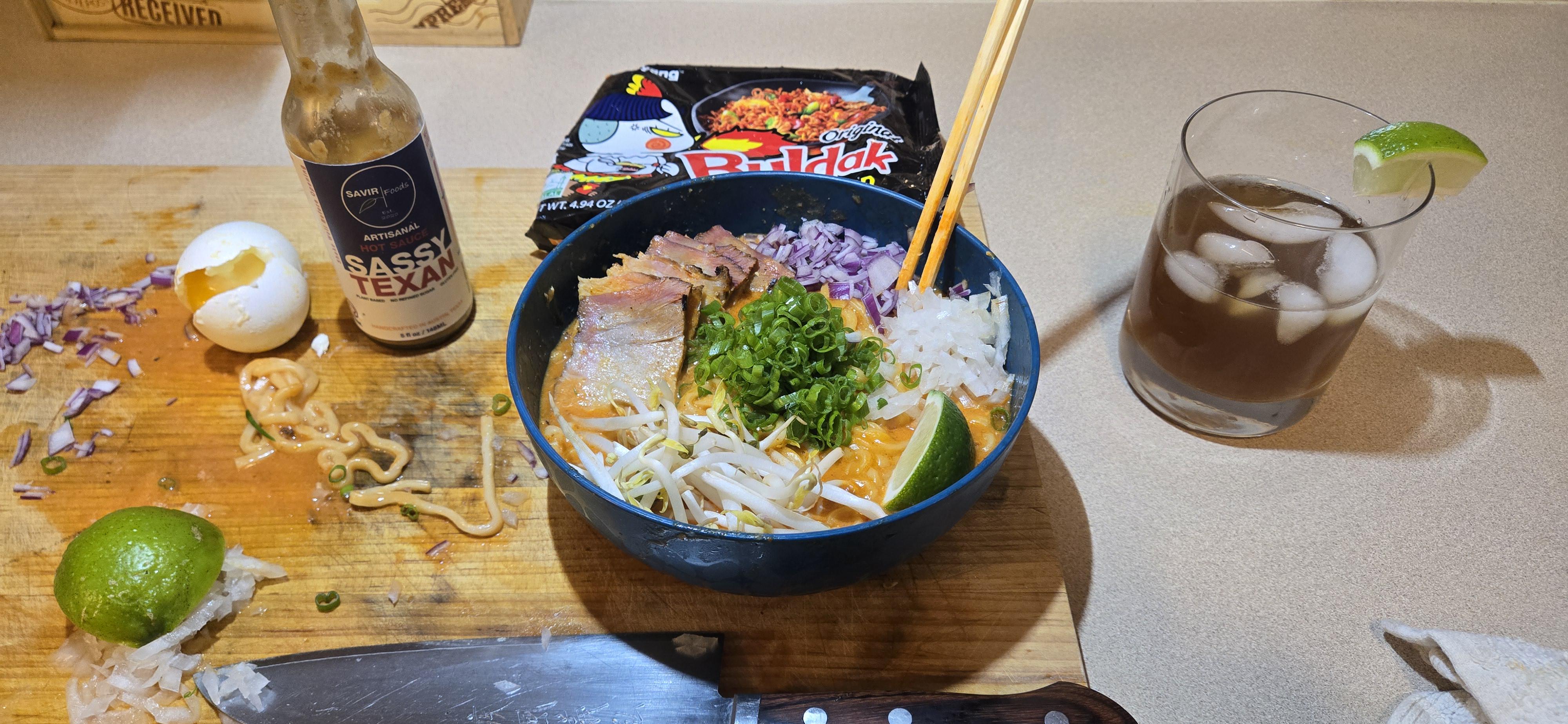 Back at it again with the Buldak and hot sauce! (And better cut lime…)