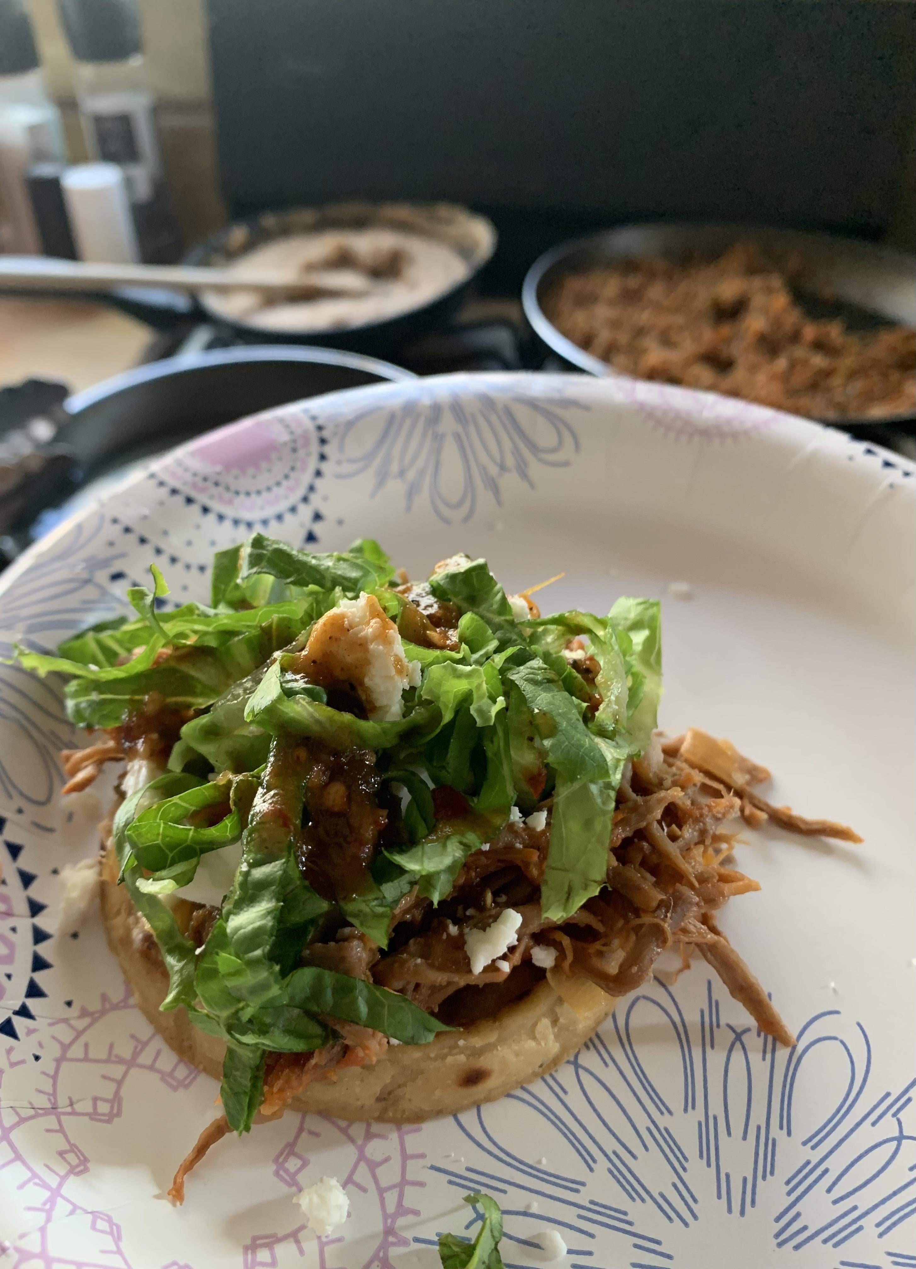 One of my favorite Mexican dishes is sopes. I remember my mom making sopes for me on my birthday as a child and throughout my adolescence, since she knew I loved them. With their spread of beans, shredded meat, cheese, cream, lettuce, and a good salsa, it was a super combination of flavors. The first bite was a trip back in time, just as I remember them, the way my mother made them for me.