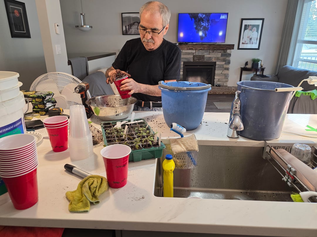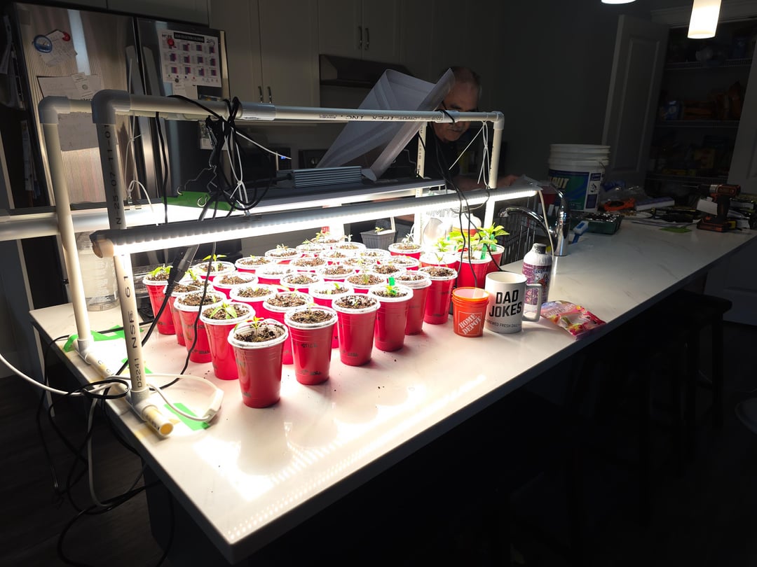 I brought my pepper and tomato seedlings, my grow lights, amended soil, fertilizer etc to set up at his house so I can get it looked after.