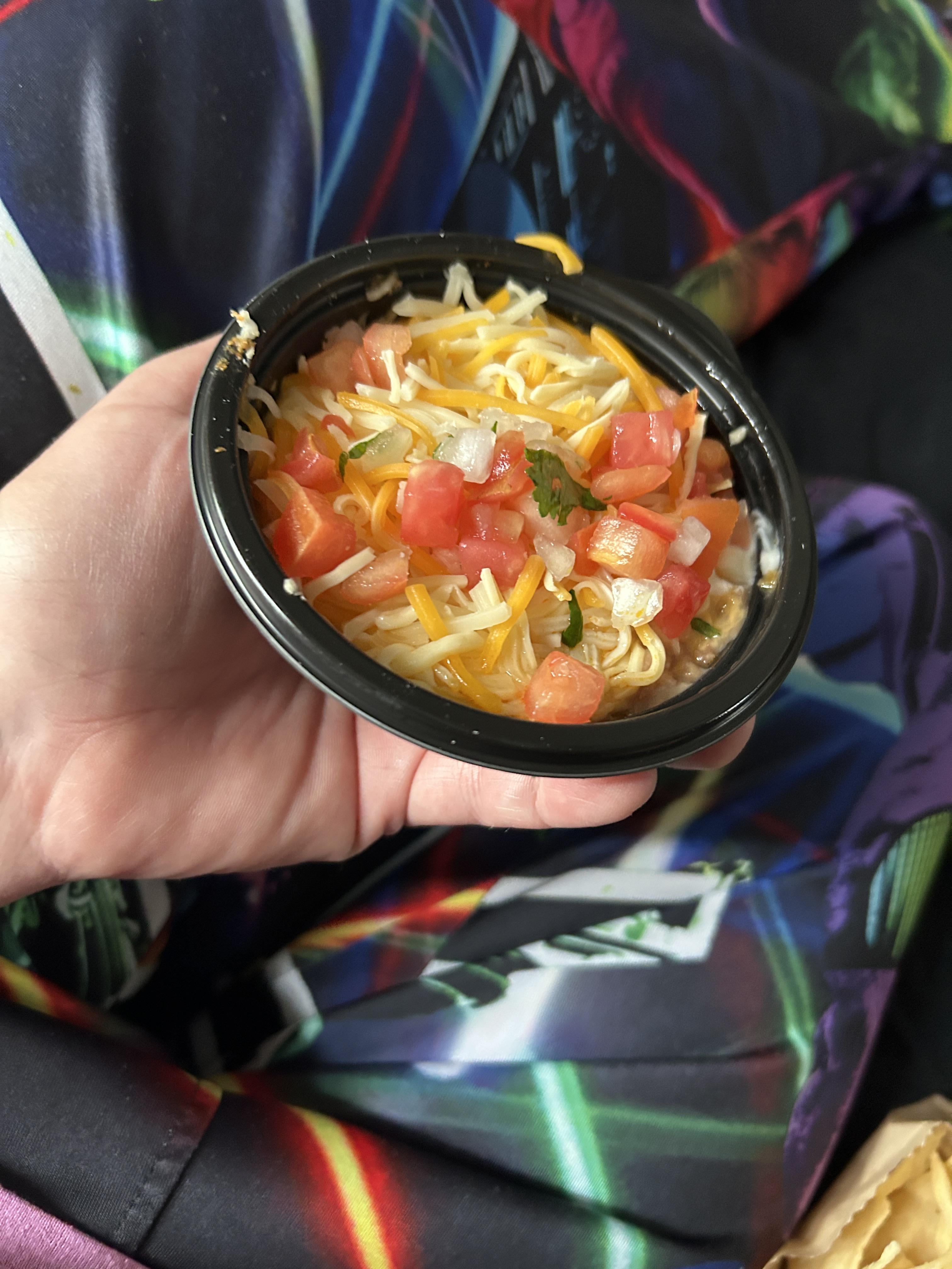 The first time I got the nacho supreme dip, I went to the TB near my house and was disappointed. Yesterday, I got one from the TB across town and man what a difference! I added extra 3 cheese blend. The beans were smoother and overall much more enjoyable experience. I’ll add this one into the regular rotation.