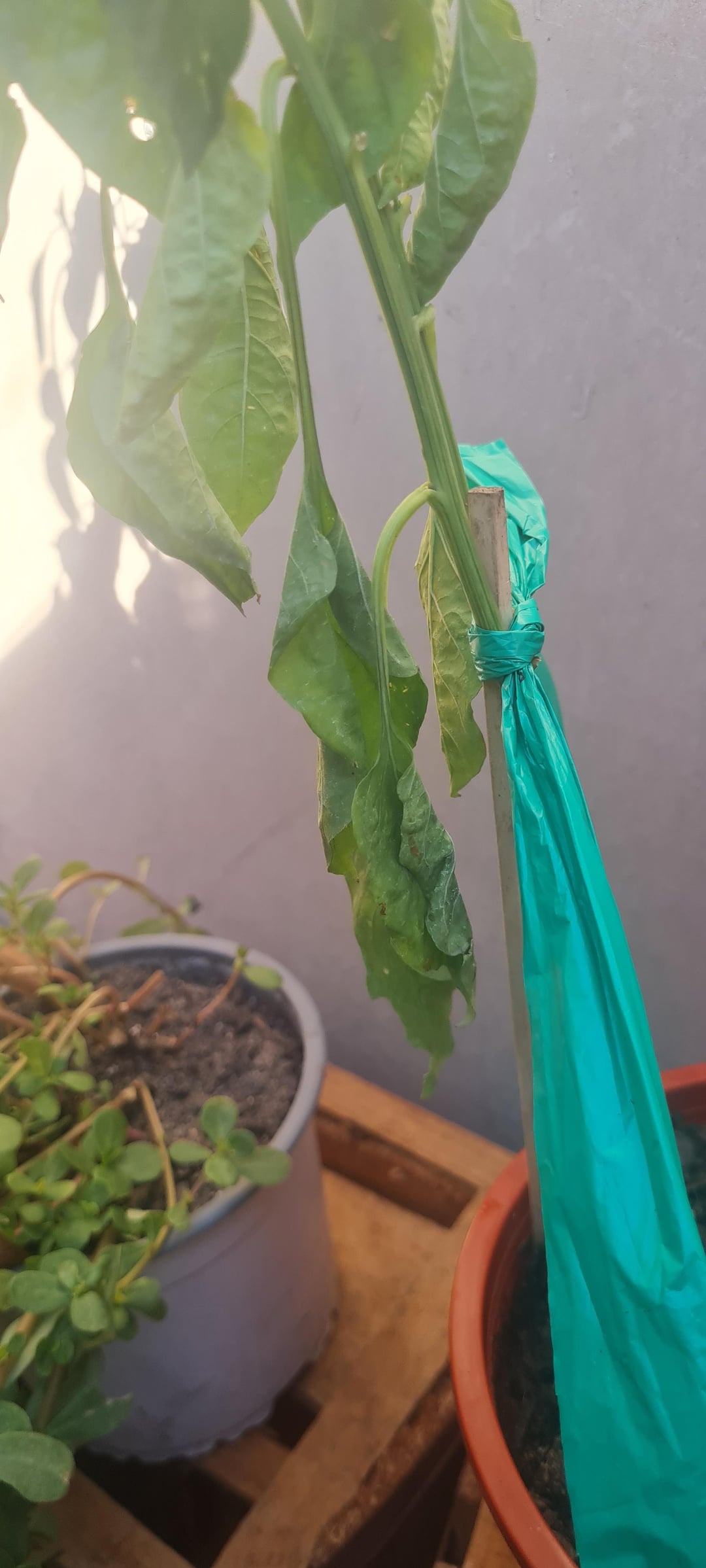 Hello,i transplanted this pepper plant with a little one who's name i cant remember,but the pepper plant looks so weak and th other is drying,what can i do please i won't killing him 😖 by particle_man1038 Hot peppersPeppersSpicy Stuffsweet peppers 3 Comments Dismal_Tutor3425 2 hours ago Water them. getcemp 2 hours ago Those need water. breadist 2 hours ago How is the soil doing? Is it moist? I can’t see the soil really. It looks like the plant needs water.Write A CommentYou must be logged in to post a comment.