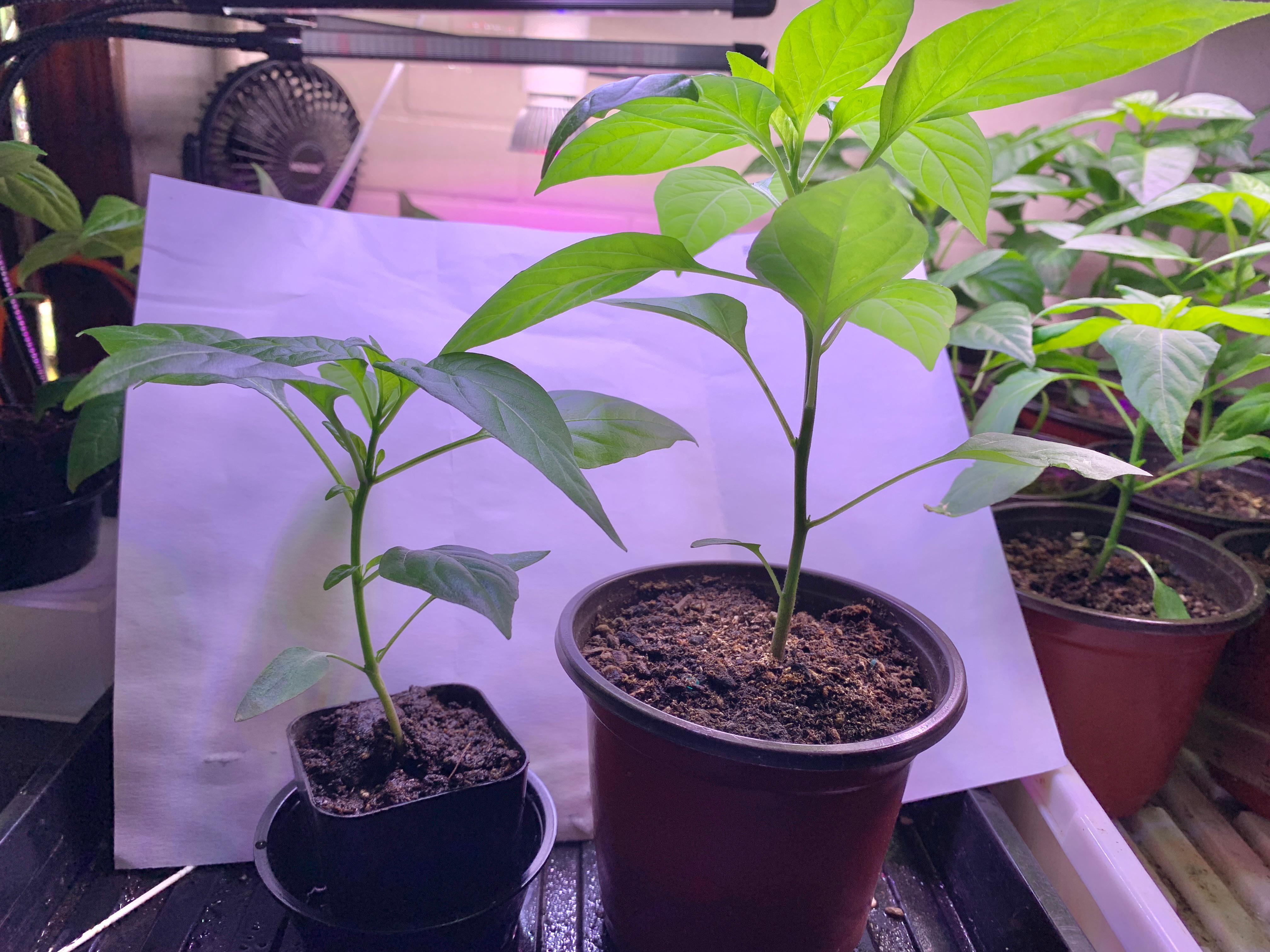 Germinated one month apart. Why does the younger plant have more mature leaves?