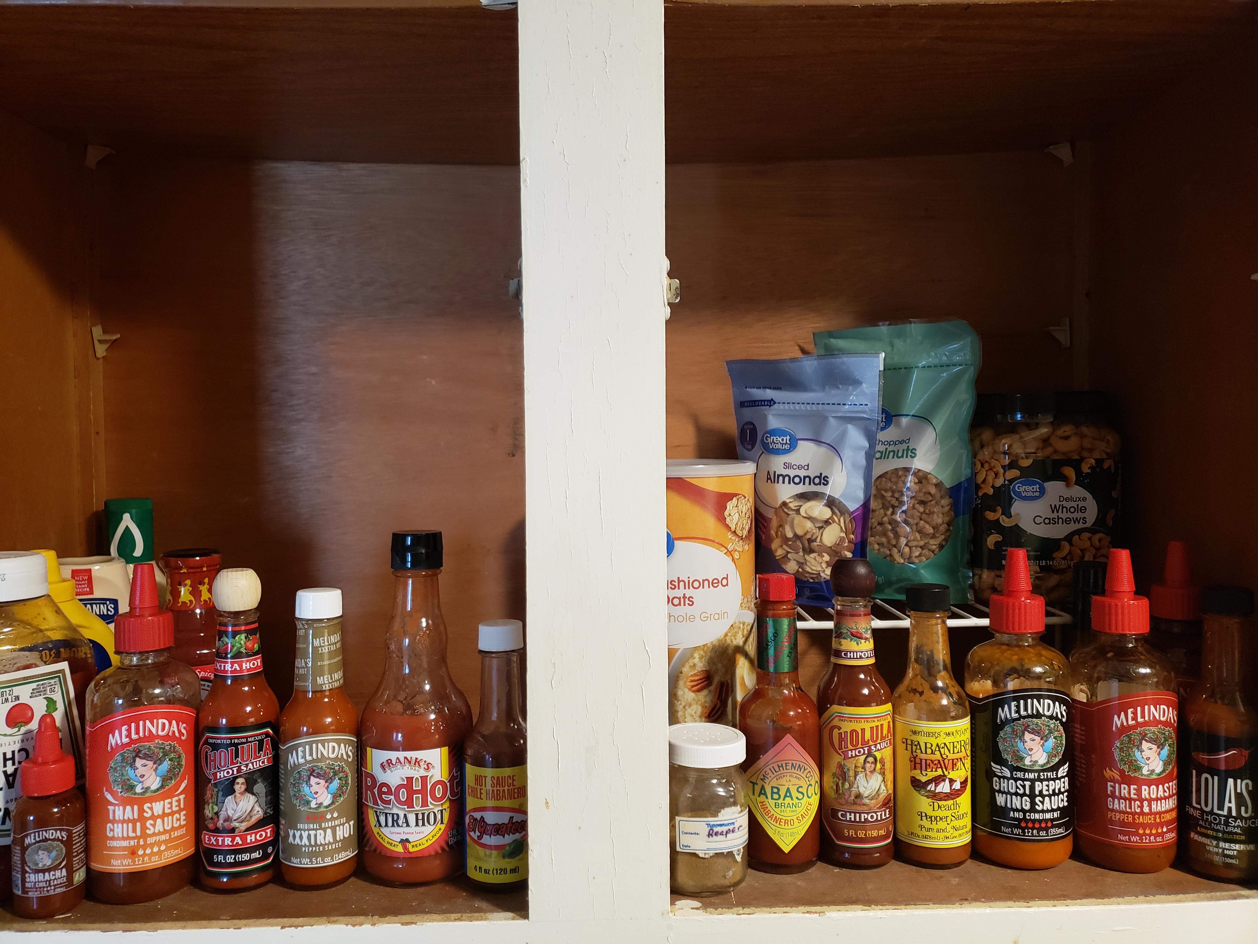 The reaper powder is brown because it's a mix of red and green peppers. Definitely not because it's taken me a year to get through not even half of what I started with.by MetaCardboard hot sauceSauce 1 Comment YouSuckButThatsOk 2 hours ago Healthy amount of Melinda’s, I like it. If you like that brand, I highly recommend the Melinda’s Scorpion sauce, it’s so so good.Write A CommentYou must be logged in to post a comment.
