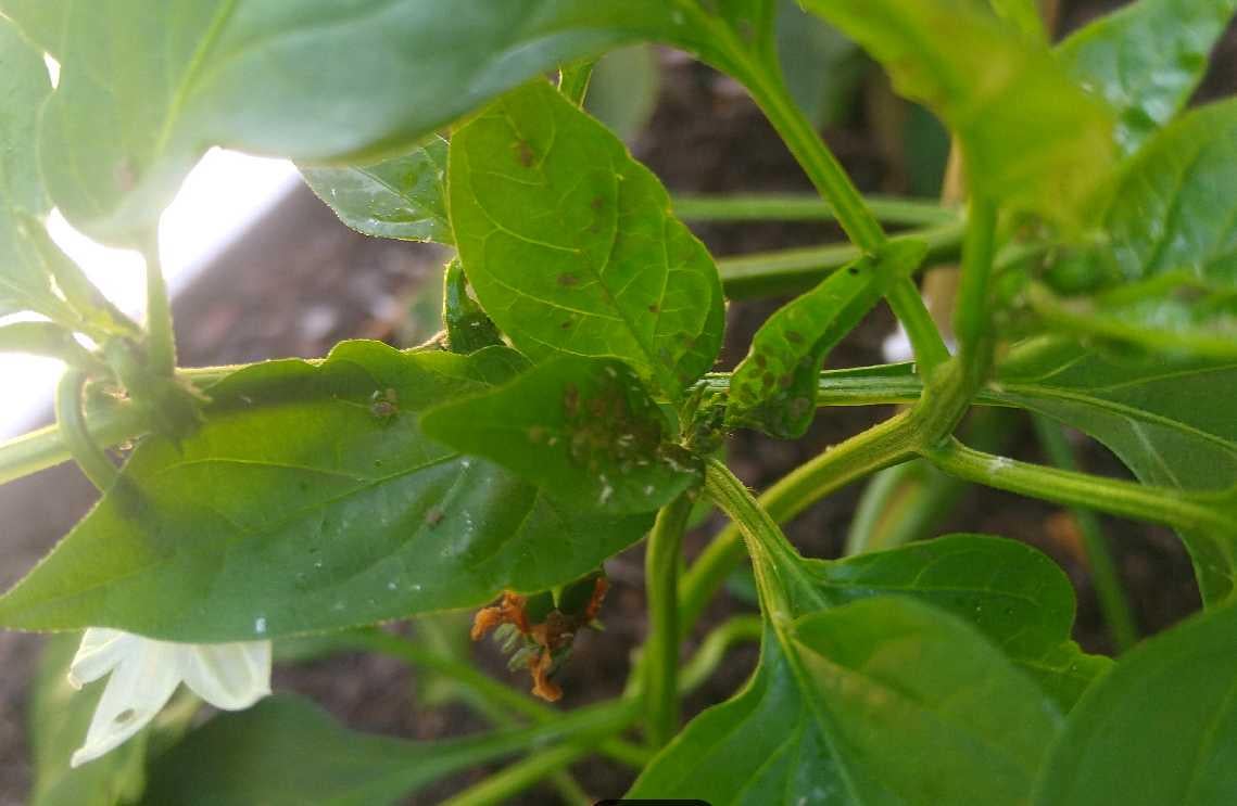 * Aphids won’t really hurt the pepper, they just like small plants (I’m not convinced this is true since they are attacking the largest plant and seem to be rapidly covering the plants).