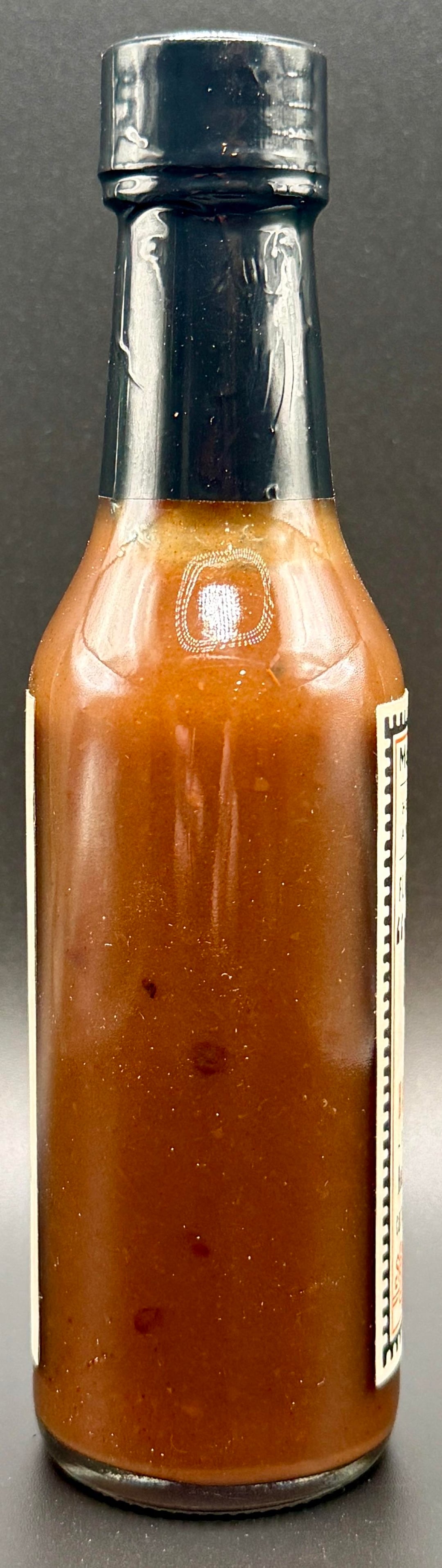 The bottle describes this sauce almost like a wine. It mentions flavors of mango and tamarind that can come through in this sauce. On my first taste I noticed the habaneros used do have a nice kick to them and that this sauce has a pleasant gentle sweetness from the carrots. The habaneros are obviously of high quality as they don’t have the harsh astringent flavor that cheaply-grown factory farmed habaneros can have, instead having a robust flavor with plenty of fruit and a subtle vegetal background. I have been cooking a lot of Thai food lately so I’m familiar with the flavor of tamarind and I do pick up notes of that in this sauce. I also pick up hints of dried fruits like raisins and prunes and maybe just a hint of the mango the label suggests, though this doesn’t have the characteristic almost fizzy funk that mangoes have. I believe the smoke is what’s giving me the dried fruits sensation, and while you can taste the smoke in this sauce it’s gentle and very well balanced, similar to what Butterfly Bakery of Vermont does in their maple wood smoked sauces. The olive oil increases the richness and decadence of this sauce and while not giving it an emulsified texture, it does give the sauce more body and helps bring out the fat soluble flavors of the peppers and other ingredients. This is near the middle in terms of heat for habanero sauces that I’ve tried. There’s a quick sting of heat and a little linger but this won’t pose a challenge to anyone with a bit of tolerance.