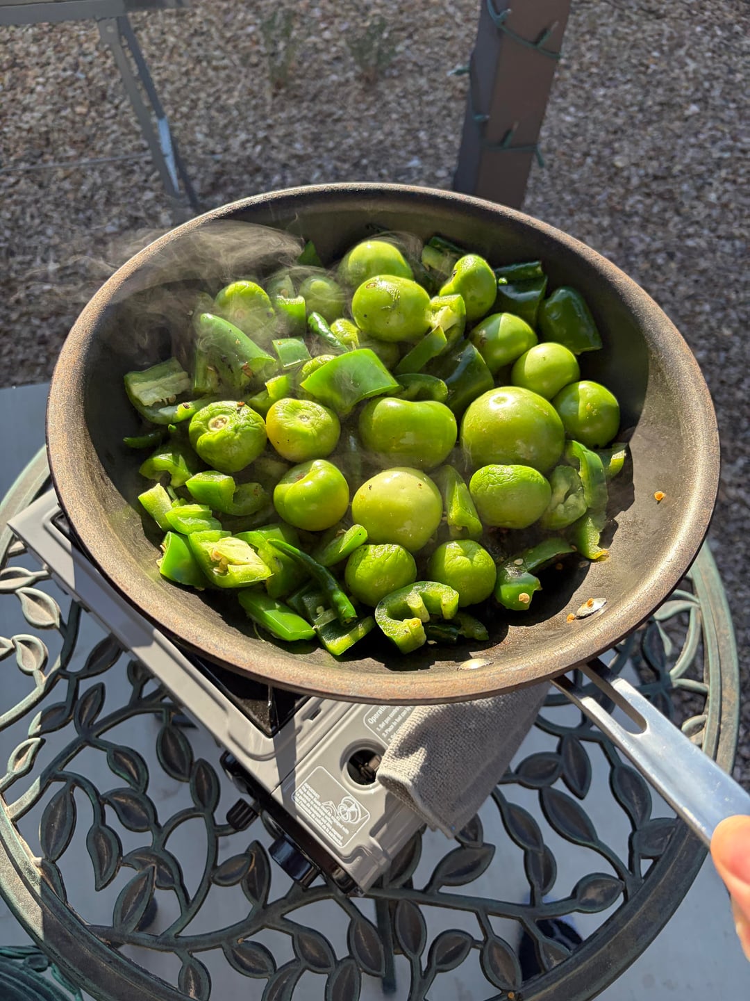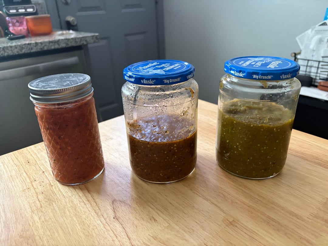 Salsa verde 3: tomatillos, jalapeños, Thai green chilies, garlic.