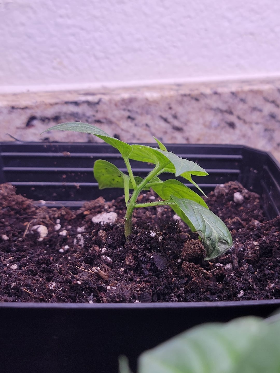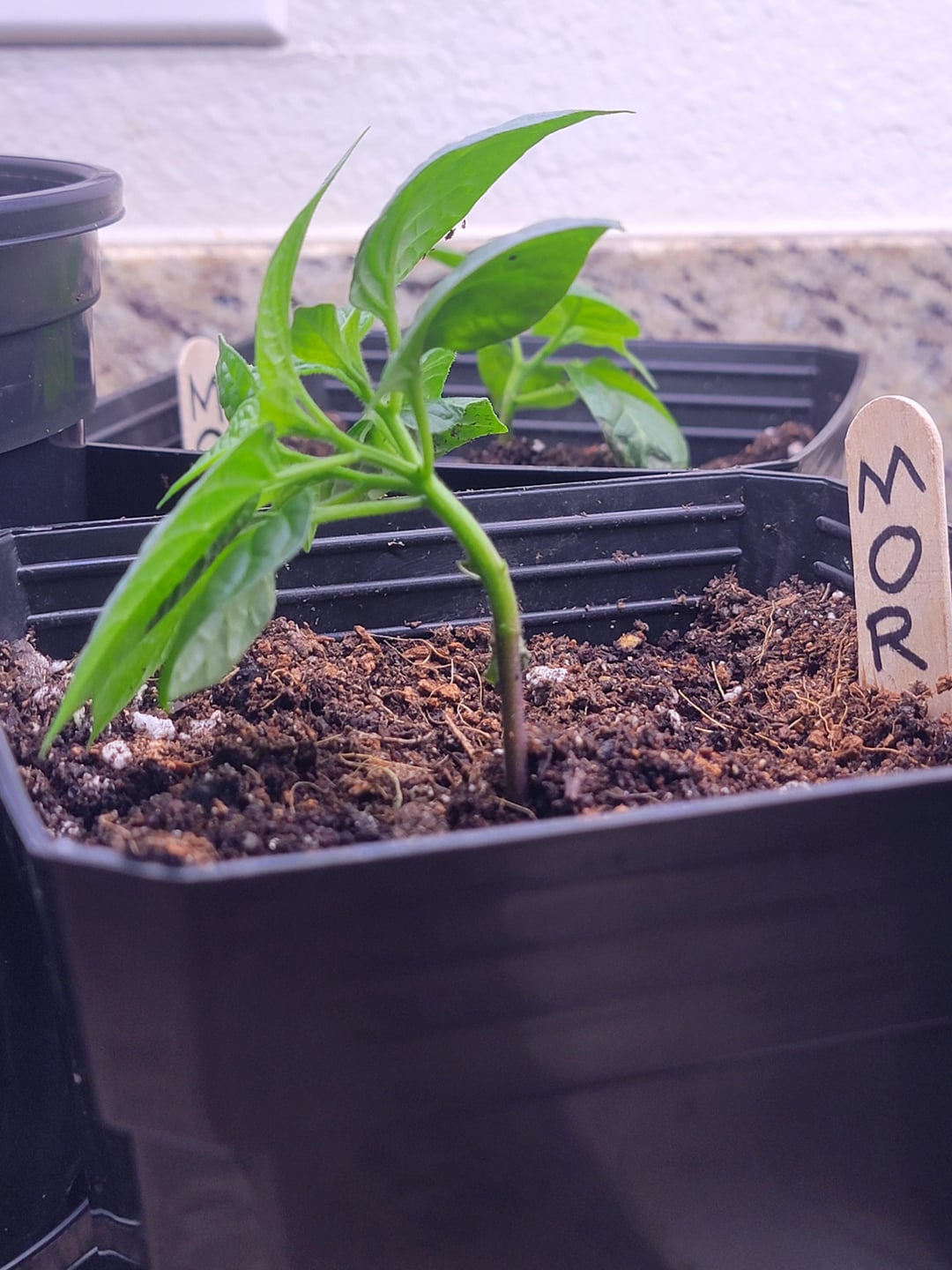 My mini olive rocotos were moved just outside the lights while I was out of town, and now they're all bent from reaching for light.