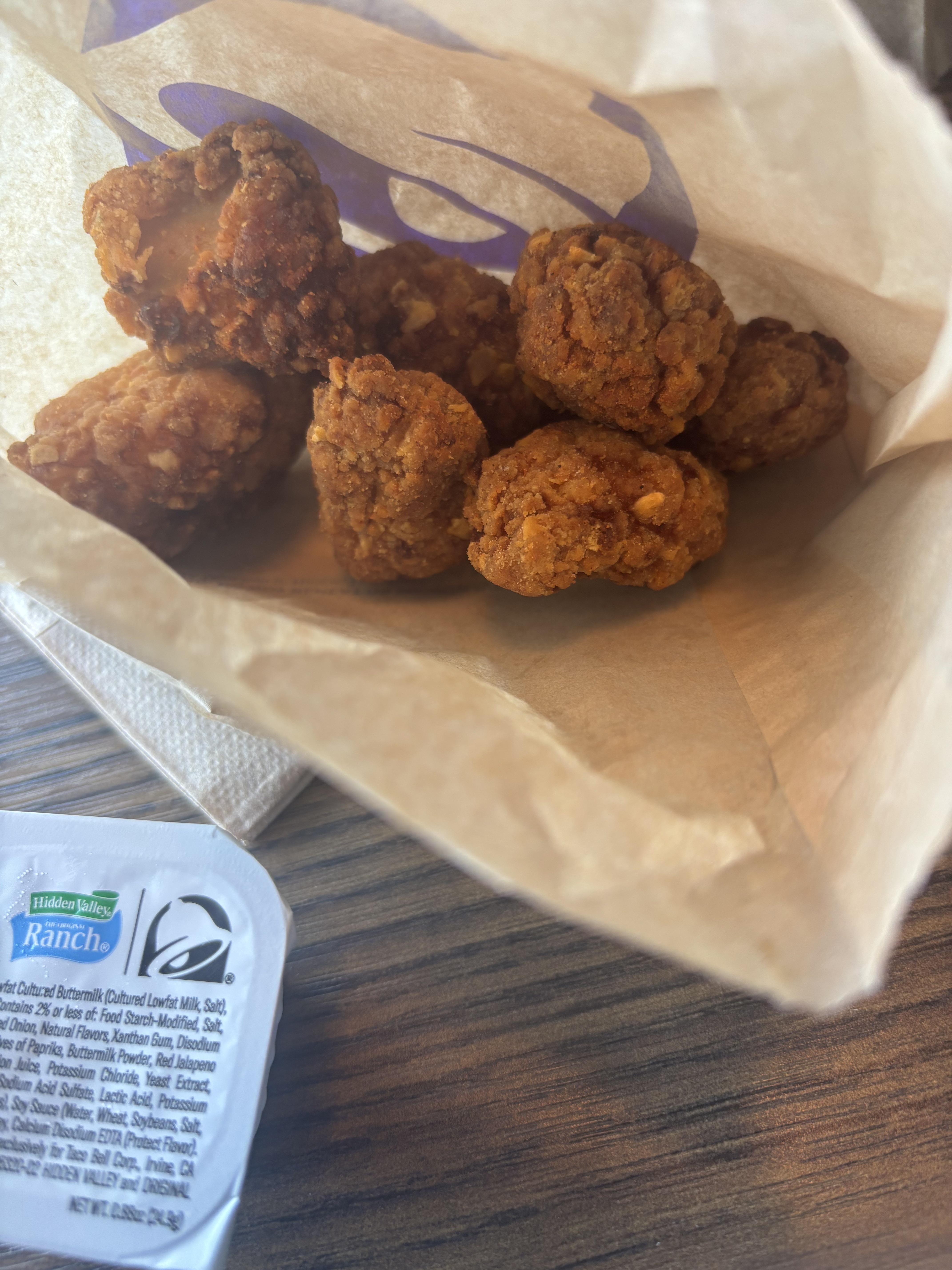 New sign up item 5pc Diablo , this Taco Bell cooks these to perfection I swearby Temporary_Catch_4422 taco bell 1 Comment SayHeyRay 2 hours ago Oooh you also got an extra 2 nugz too lolWrite A CommentYou must be logged in to post a comment.