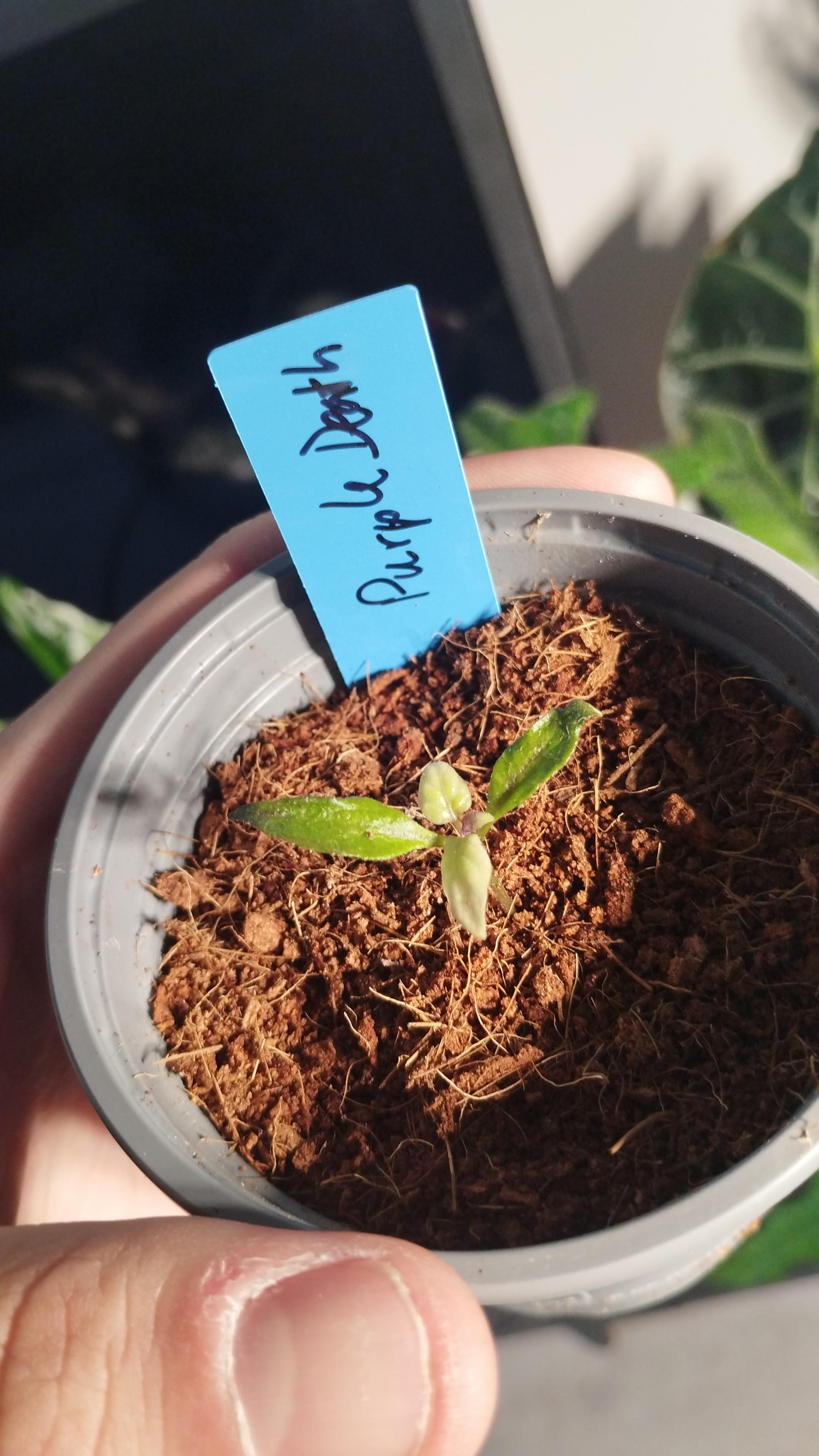 This is a Purple Death F4. I am guessing the genetics did some funny he he ha ha and its either variegated or sick. But my question is will he survive and whats the best way to deal with it ? Or just give up because maybe its just a sick plant that struggles to produce Chlorophyll as a young plant?