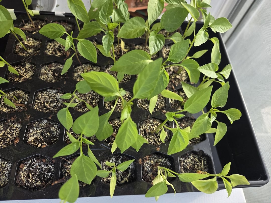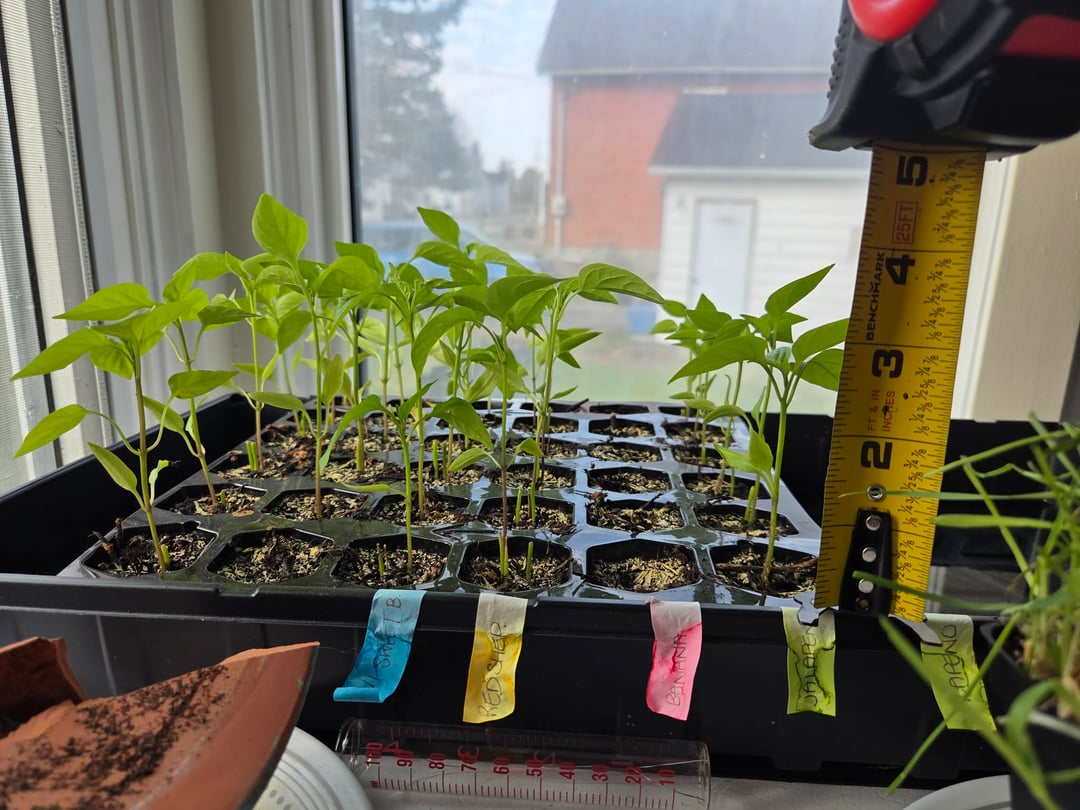 Started them on Feb 27th. I've been fertilizing once every 10ish days starting March 19th (I think I've done it 4 times now). Watering every 4 days. Heat pad on the bottom. It just sits in this basically south facing window.