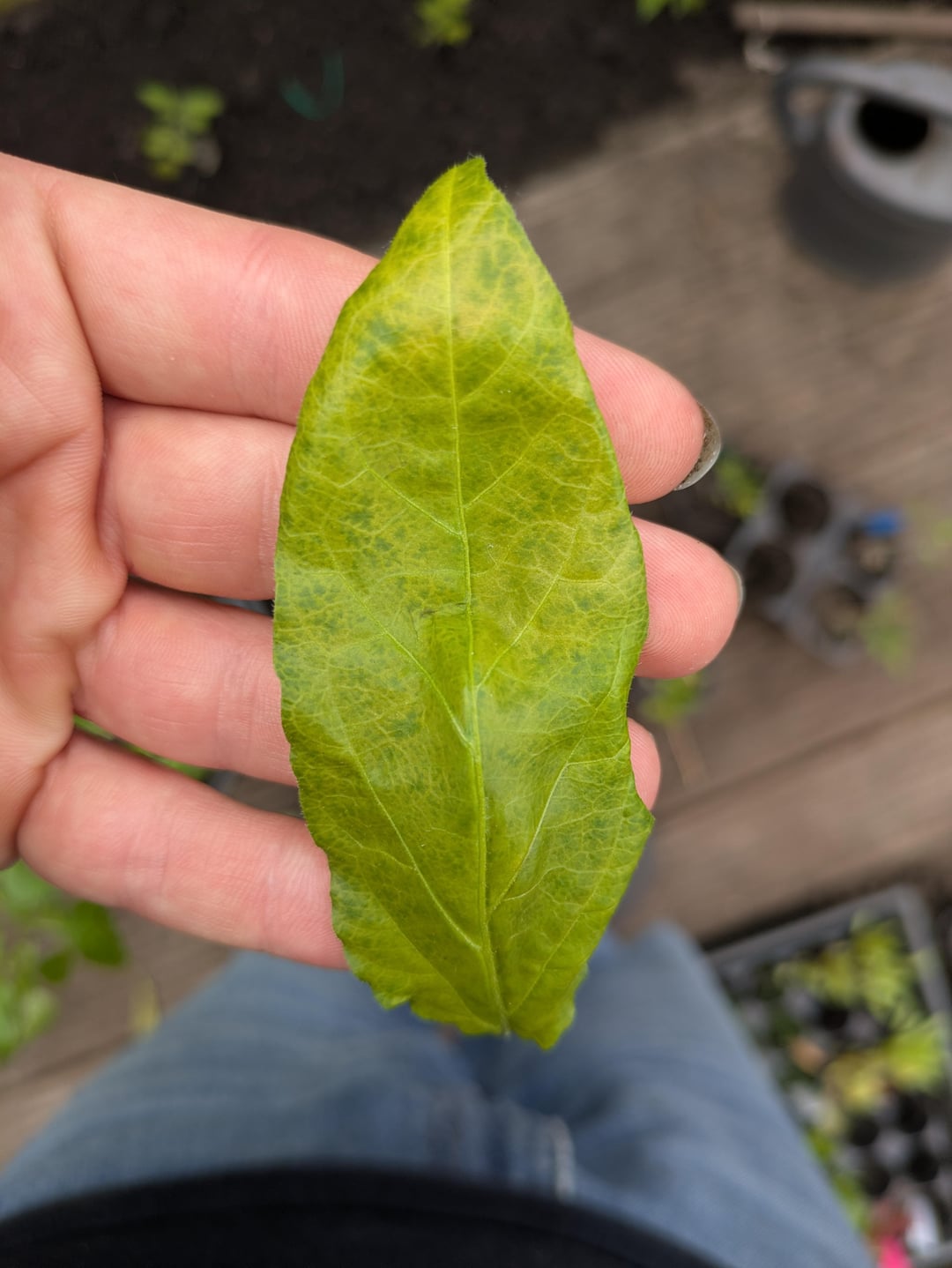 Alternatively, if more widespread, it could be an issue with a nutrient deficiency, possibly nitrogen. Overwatering can cause soil to leach minerals. If itโ€™s this, feeding with a nitrogen-rich fertiliser should solve the issue.