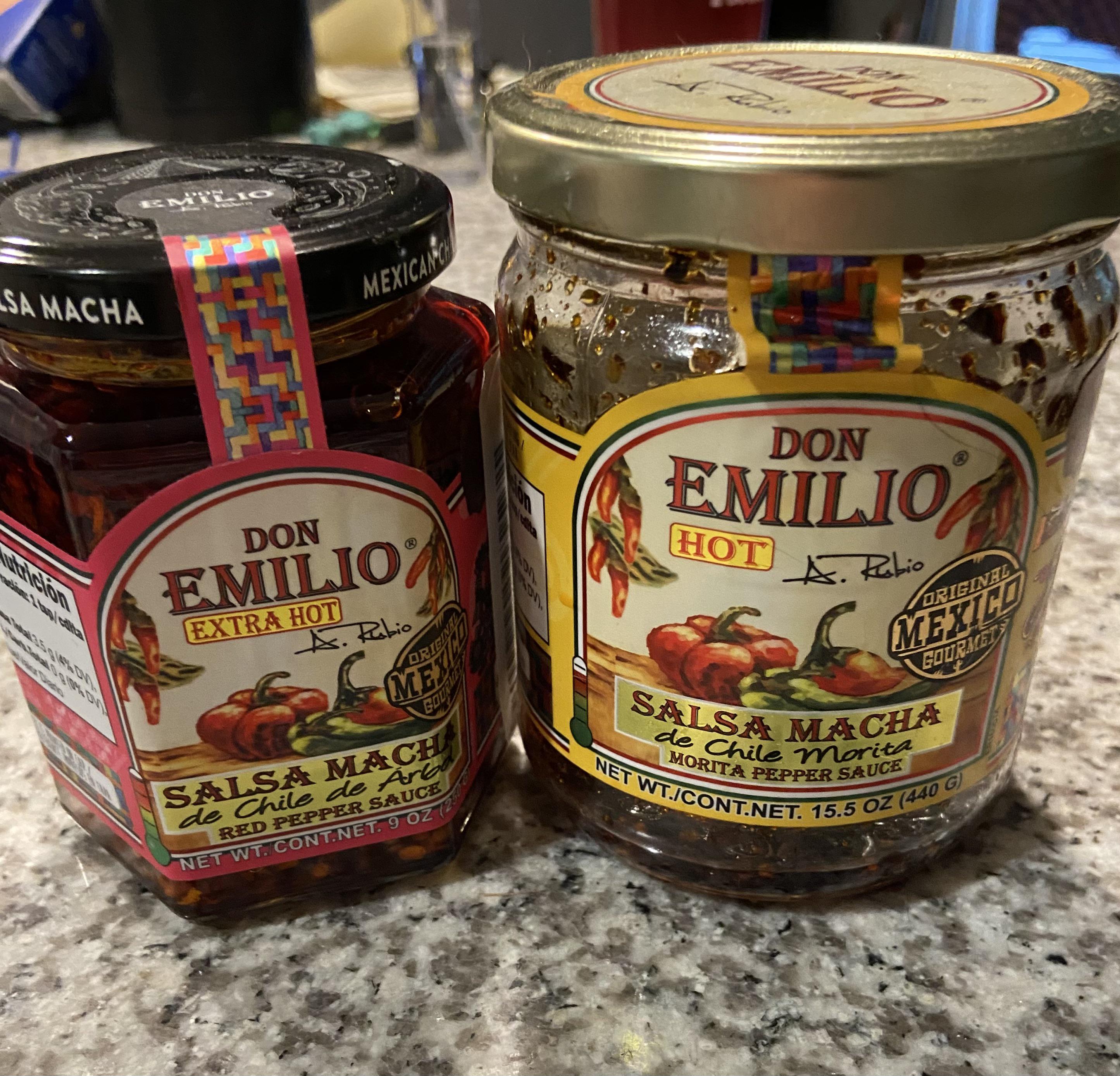 i thought it wouldn't be that bad because my spicy tolerance has increased enough that i don't find the "hot" one particularly spicy anymore. i usually make toast with avocado, a fried egg, and a lot of don emilio salsa macha for breakfast. today i tried the new jar. holy fuck. i felt like i was going to puke by the end of my meal 😭 this was an insane jump in heat. 10/10 recommend both of these but keep that in mind if you're buying lol