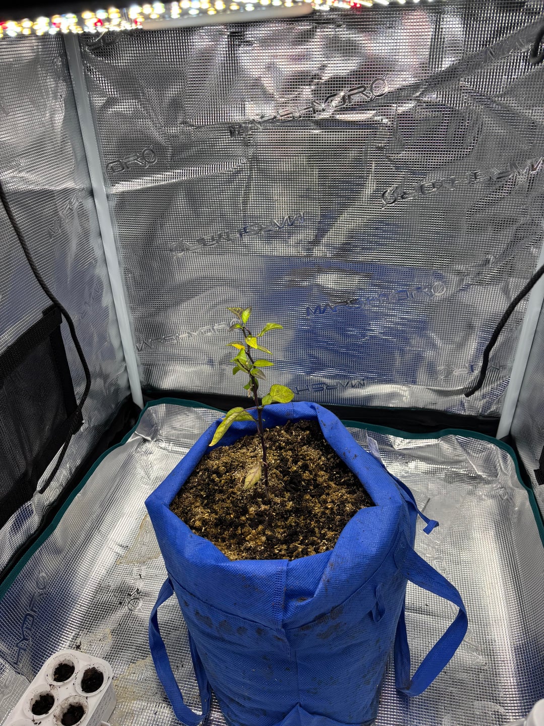 – I started it in a half gallon pot. It was in that half gallon pot the majority of its life and only transfered to this bag a week ago so everything else will refer to that period.