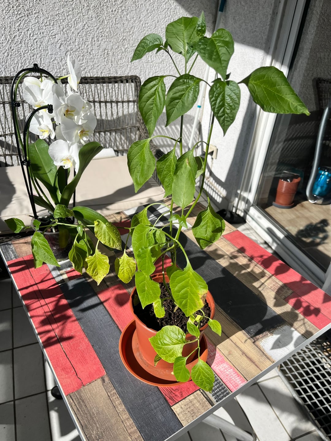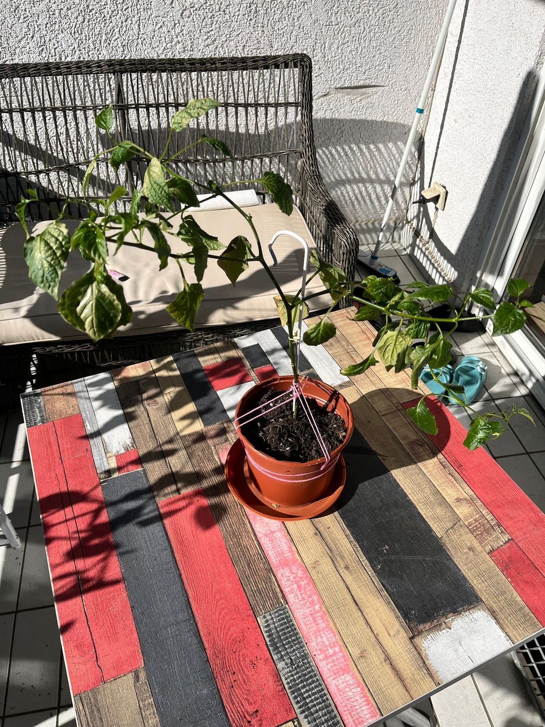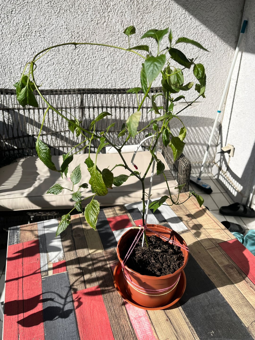 I’ve been growing these peppers since late last summer. Because it got way too cold outside, I had to move them indoors and kept them under artificial grow lights all winter. Now they’ve turned into these really long, thin sticks.
