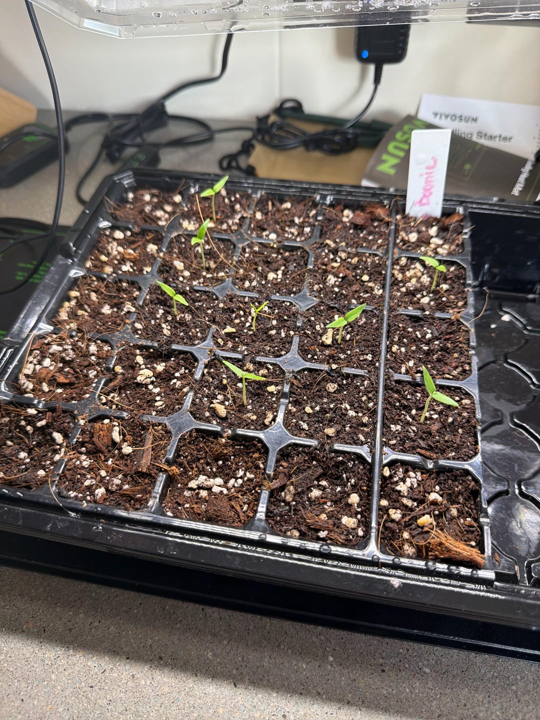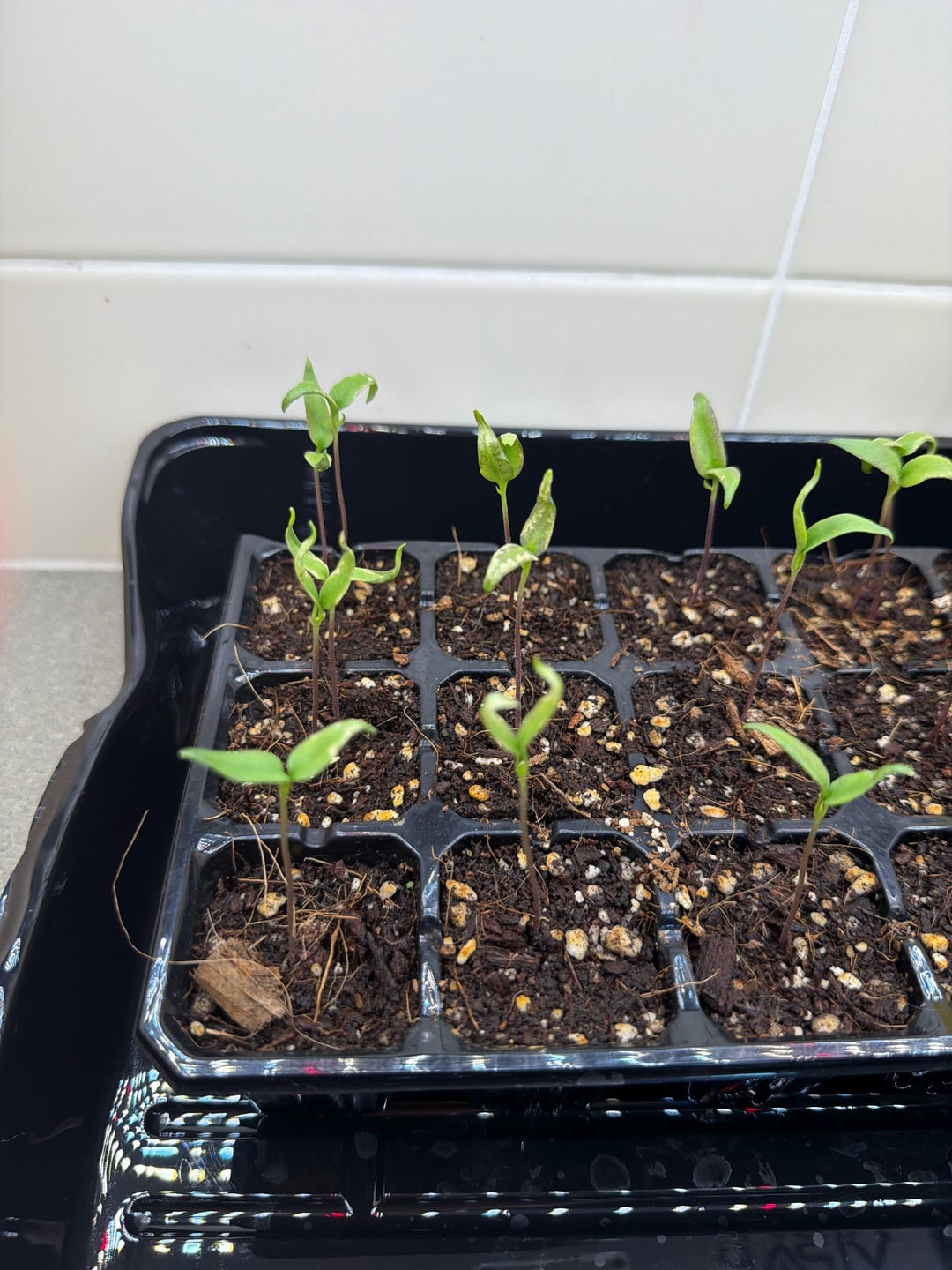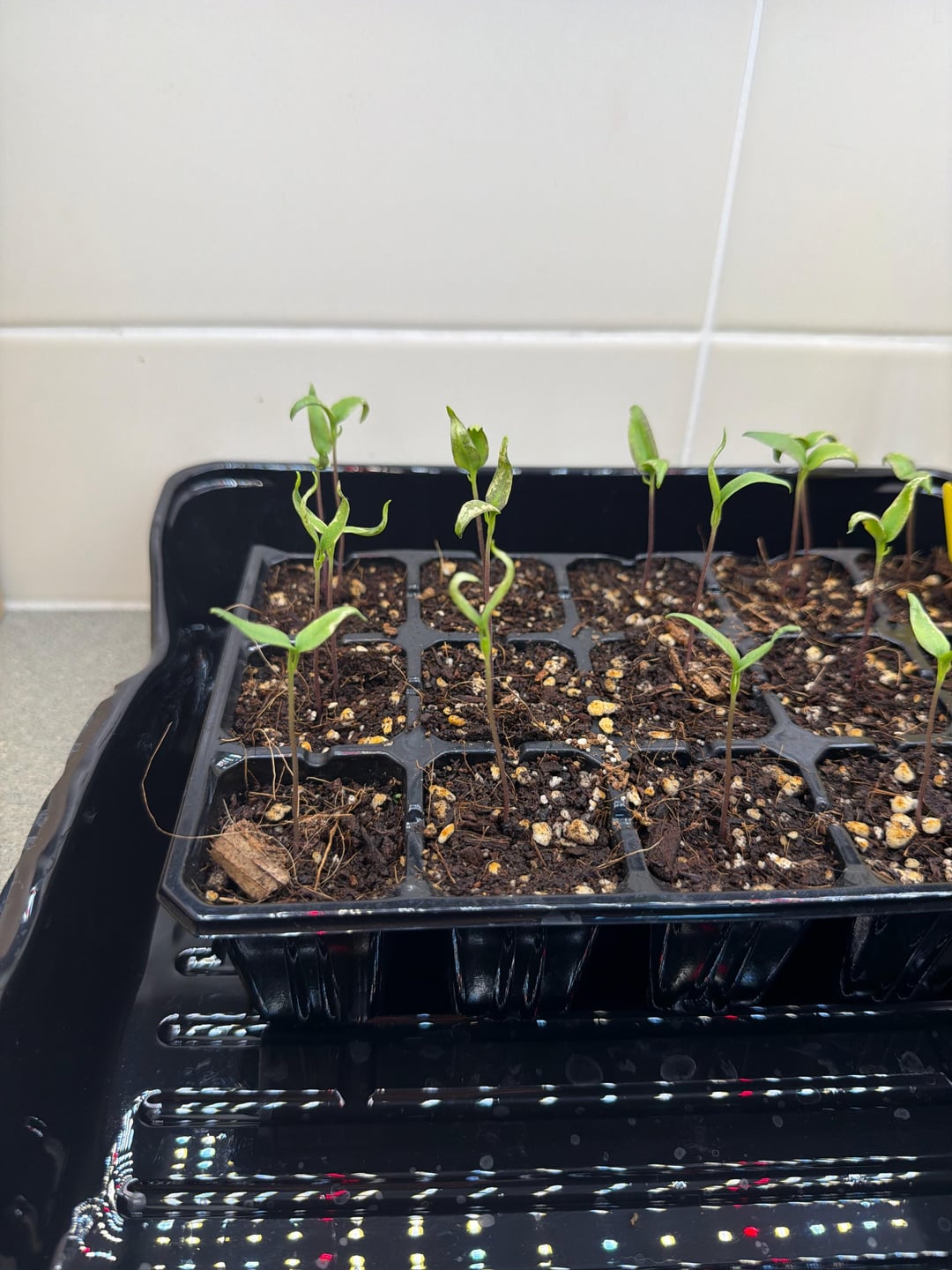 I’m new to hot pepper growing; I did make an initial mistake of planting Big Thai hybrid seeds with Guam Boonie pepper seeds and I left the big Thai hybrids under the humidity dome too long. I took them out a few days ago and under a new grow light (Vipar P700). They look like they’re reaching for the light, so I moved the light closer, but now they look like maybe a little sunburnt? Any advice on what I did wrong and how to fix these? As a side note, the Guam boonies seem to be doing well and just started sprouting.