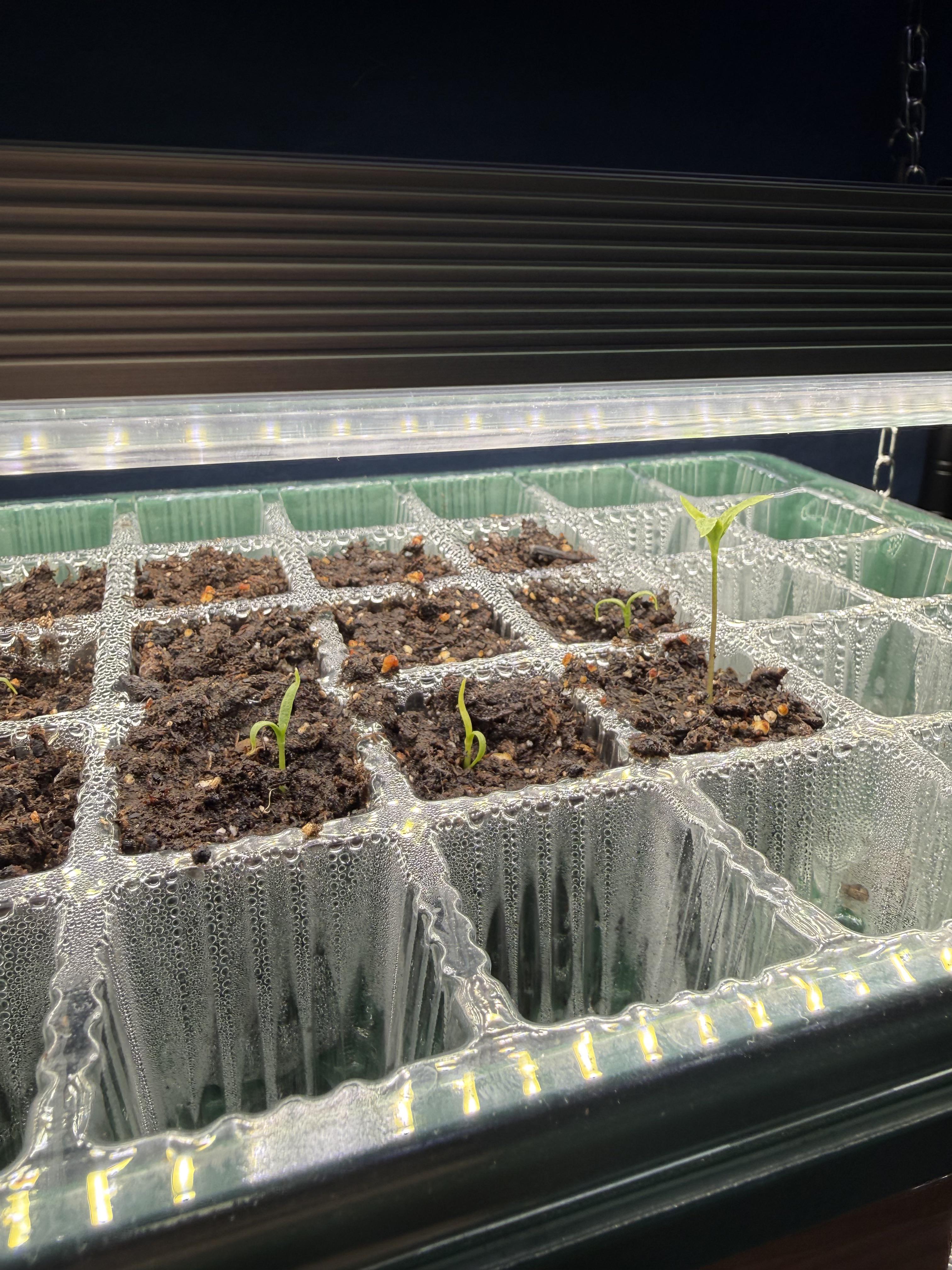 Might be a long shot but figured I would ask. These are supposed to be large hot cherry peppers. I got the seeds off amazon and they are taking their sweet old time sprouting 😂 been a few weeks but making progress. I’ve looked online and saw some pictures but this early on can anyone tell me if these look like cherry peppers sprouts 🤷🏻‍♂️just curious