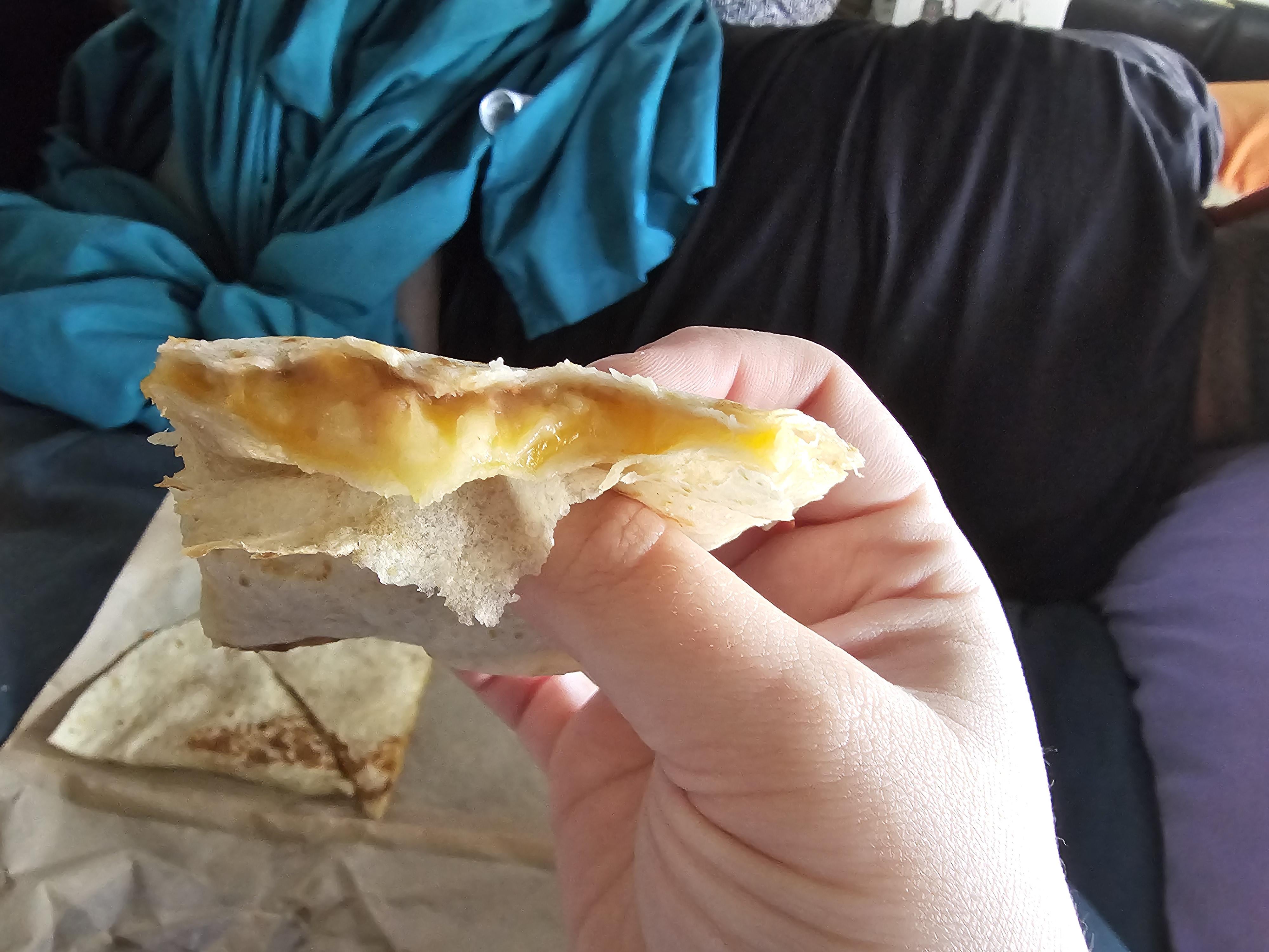 They never put this much cheese in, and honestly I kinda don't like it lol I never realized how little flavor their cheese had til I had so much of it in my mouth at once. Tastes like air😅