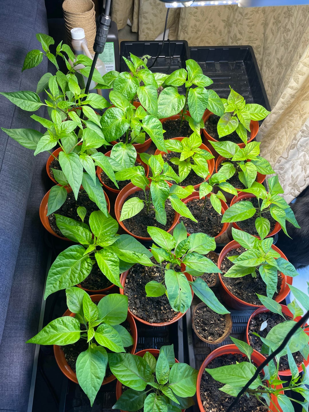 Just let me know how these look in general or if there’s anything I need to change (jalapeños, de arbol, red habaneros, blended lemons, jays peach ghost scorpion and Carolina reapers). Using a 100W grow light and feeding 3-1-2 organic liquid fertiliser about once a week (15ml per 5L). Also have a small fan blowing gently.