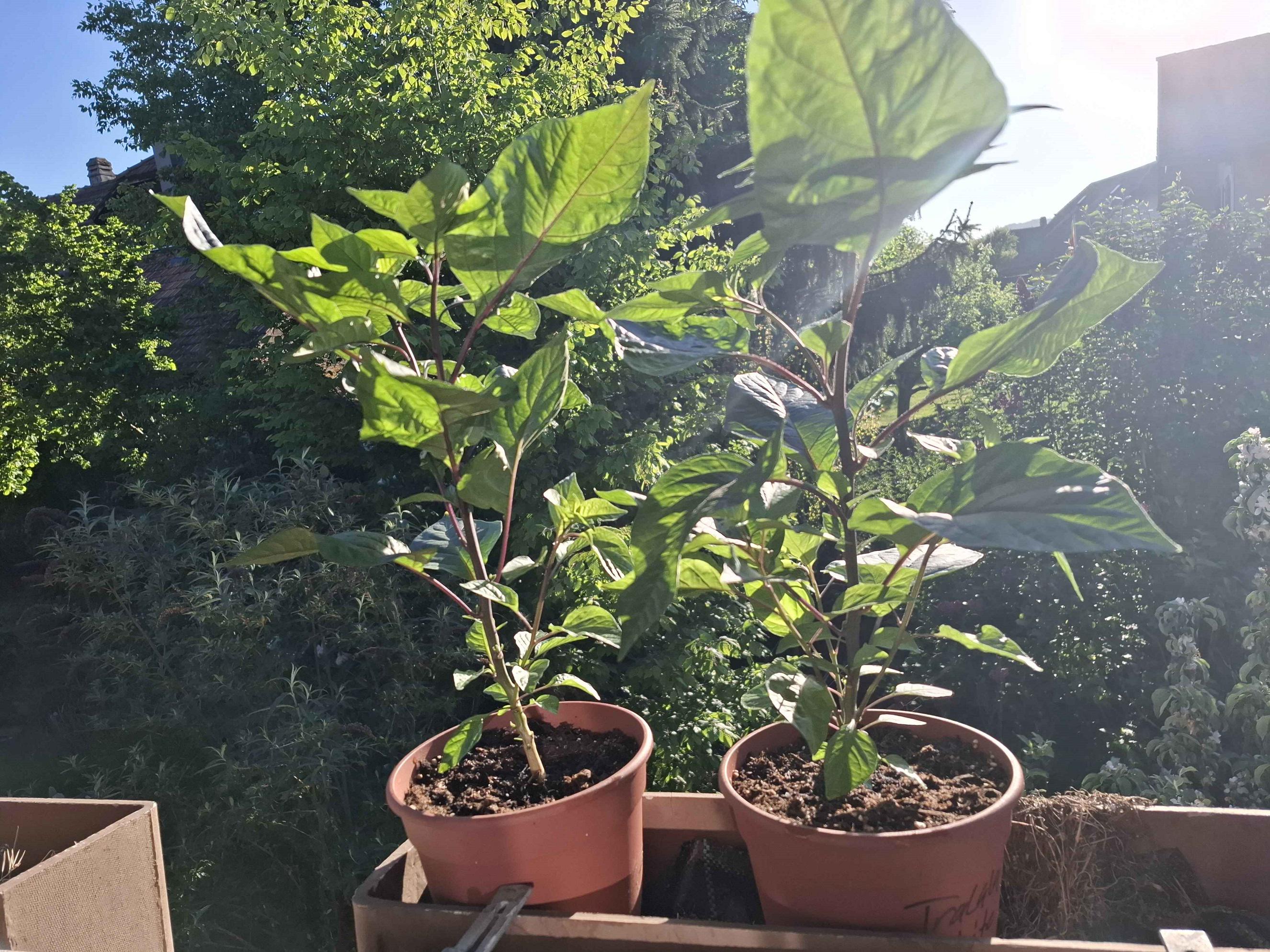 I had a Roxa Tralala Peach F3 turn out white two years ago. So I've been trying to grow them out more. This year's batch is extremely prolific, easily a month ahead in size from last year and branching out a lot. I got some 30l pots ready for these two overachievers this weekend.