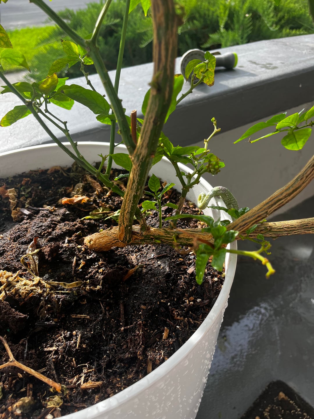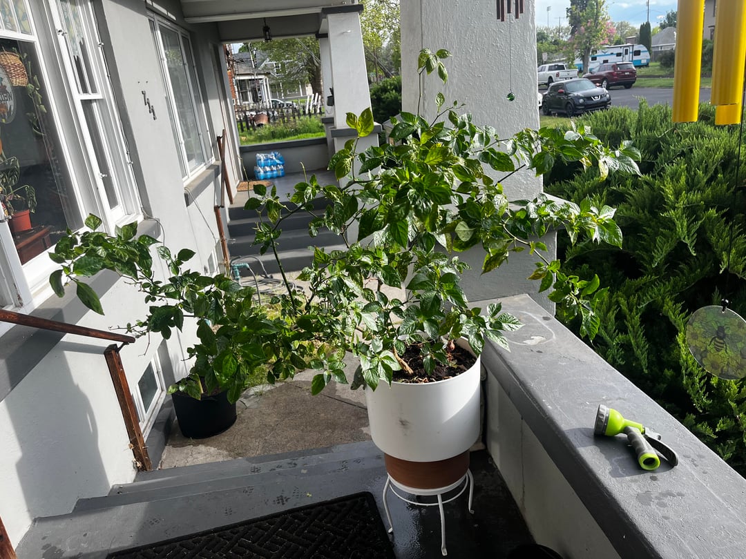 For 4 years I’ve been repotting, feeding and bringing this Carolina reaper into my house every winter. My mom bought it for me 4 years ago as a gift and I’ve kept it alive ever since. I live in north Idaho and with our short growing season, growing peppers has always been a pain. This was my little experiment to see if maybe bringing it inside and treating it as a houseplant for the winter wouldn’t help with the grow times. In conclusion yes it does, it quite likes to be grown as a houseplant. I’ve had it fruit in December last year, didn’t produce big fruit but still did. These are some photos of my plant on the first day I put it back outside this year. It needs repotted soon and is more of a shrub this year.