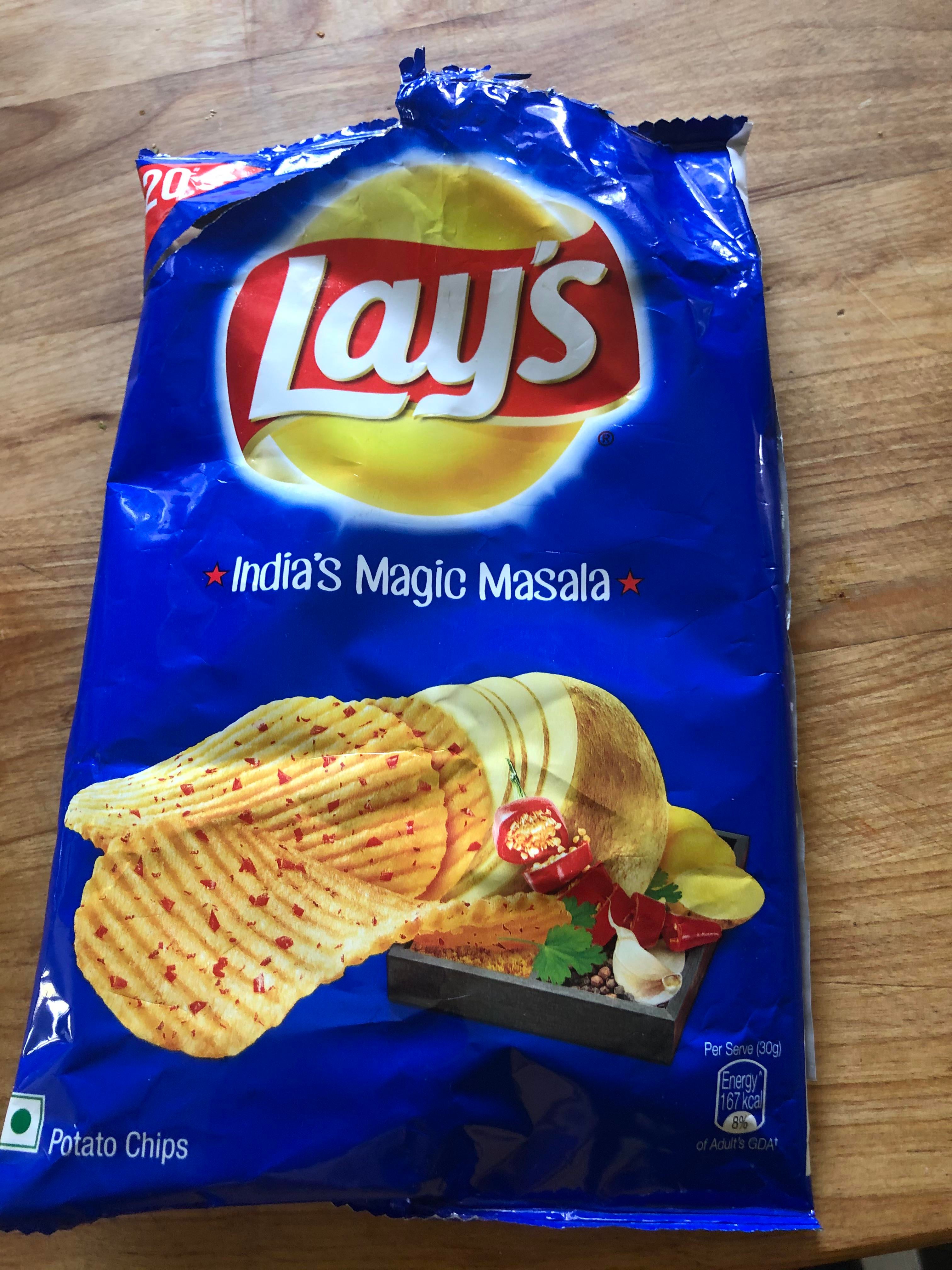 Was feeling nostalgic for India, and found these in a local Indian grocery store. These are potato chips “localized” for India, meaning they’re not white person spicy but Indian school kid spicy….yum.