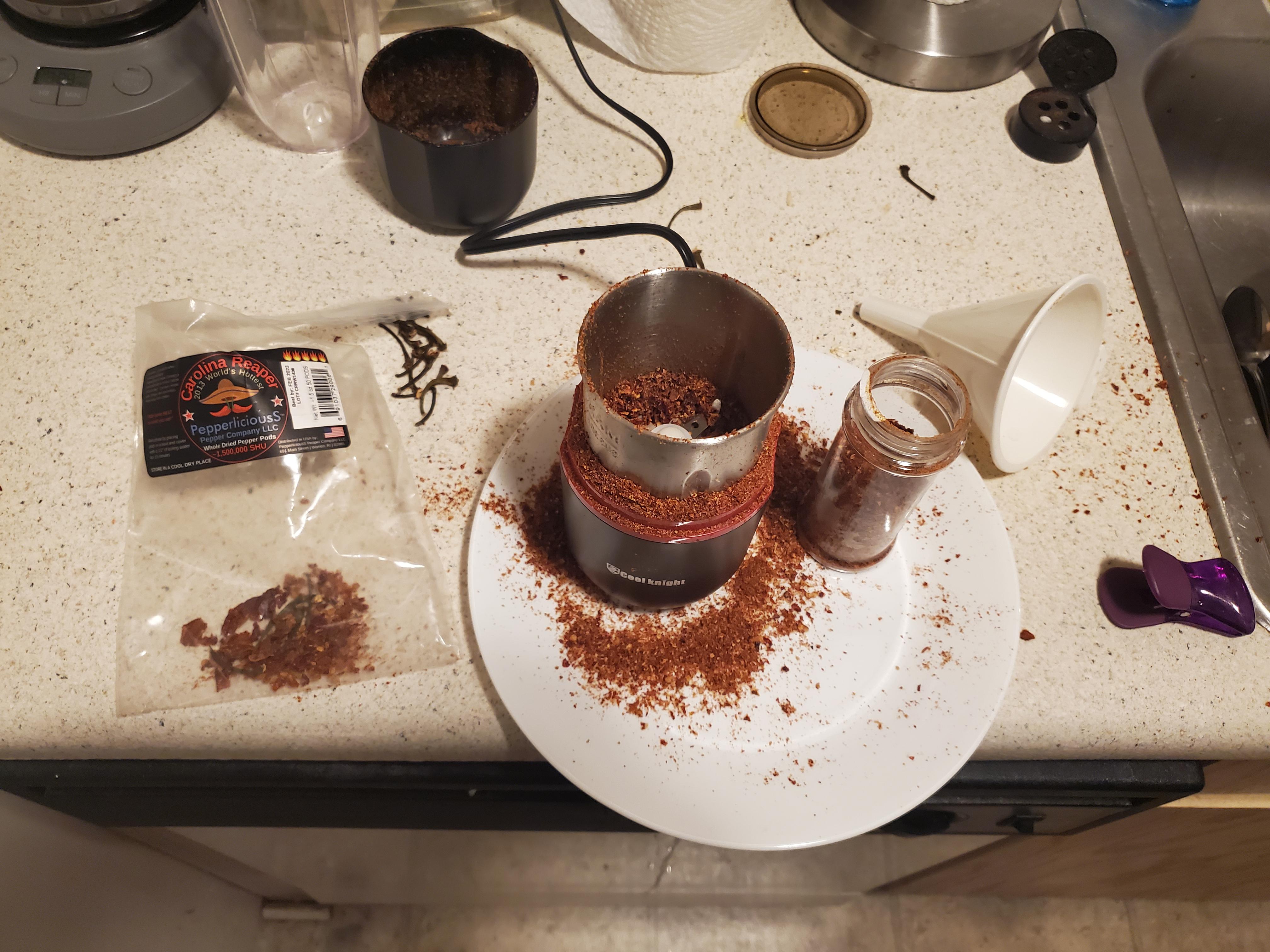Note to self: Don’t use a cheap grinder to powder Carolina Reapers with. Chilichili foodChili RecipesRecipeRedditReddit SpicySpicyspicy foodspicy recipes