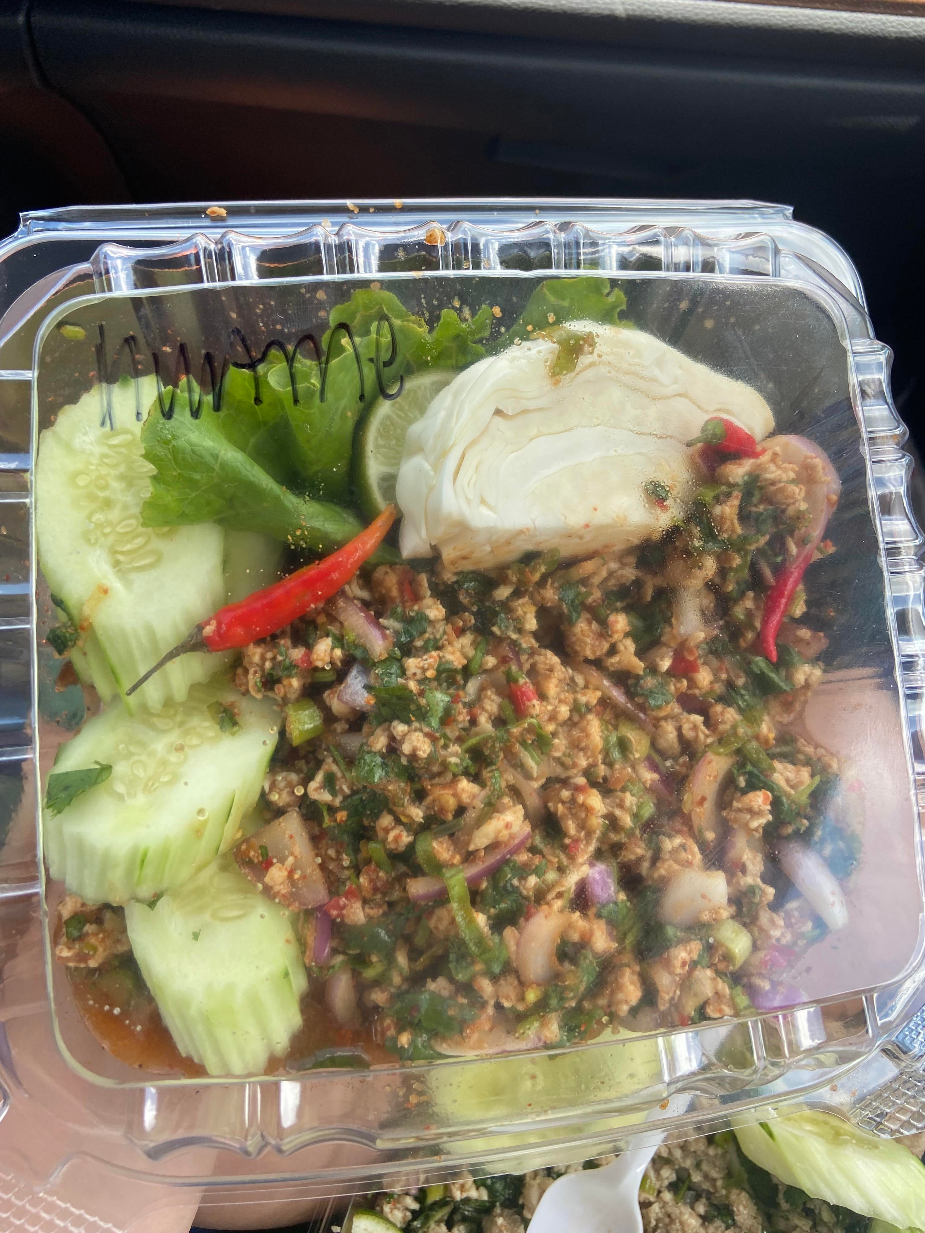 Larb Gai from my favorite Laotian Spot [spice level: Hurt Me]