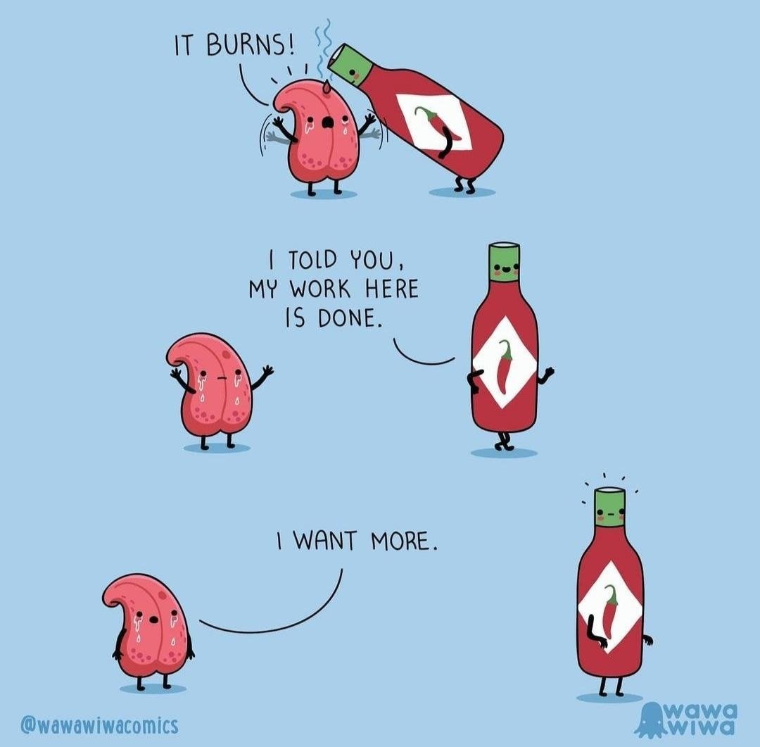 Saw this and thought of this sub. I believe there’s a small part of us all that are sadists. Or at least we take the capsaicin pain with the flavor pleasure