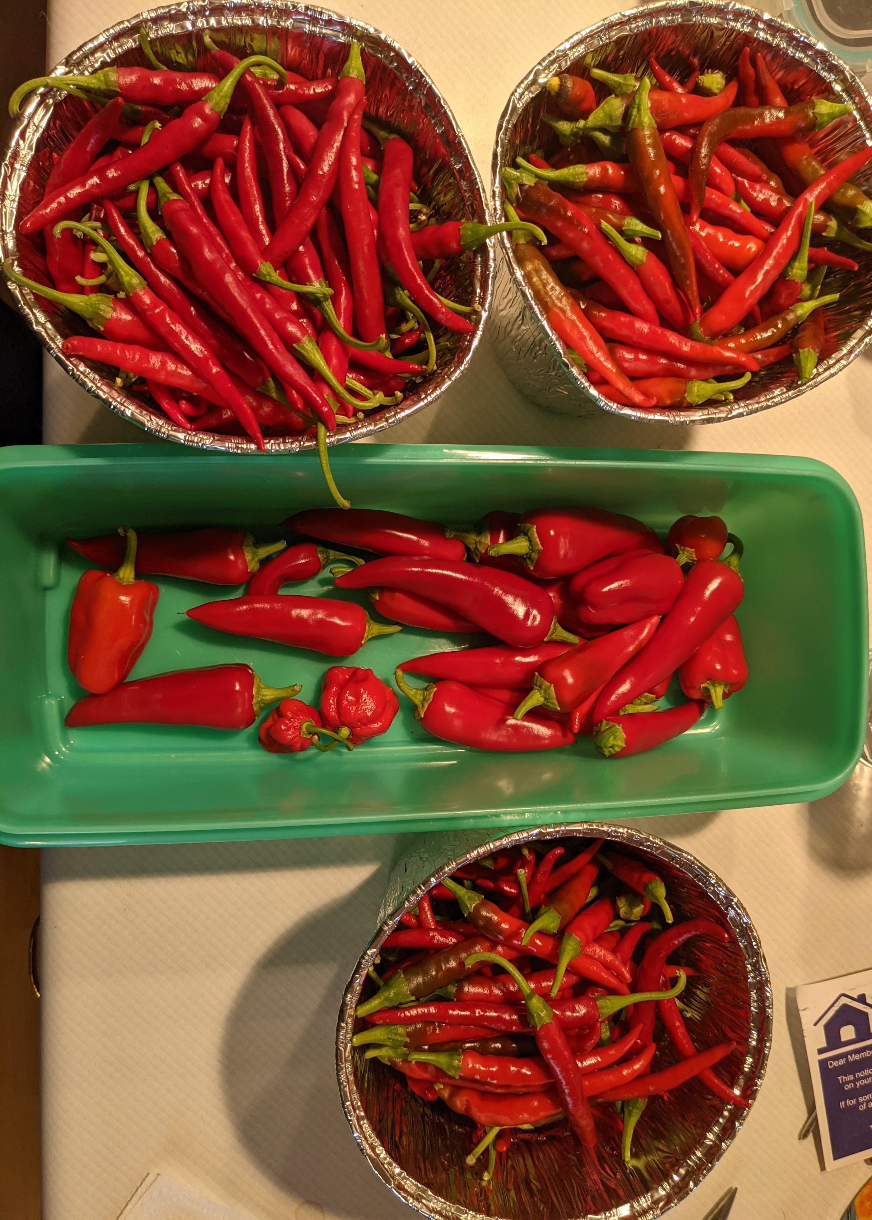 Yesterday’s harvest of Ghosts, Cayennes, Cajun Bells, and Fresno Chili’s. Chilichili foodChili RecipesRecipeRedditReddit SpicySpicyspicy foodspicy recipes