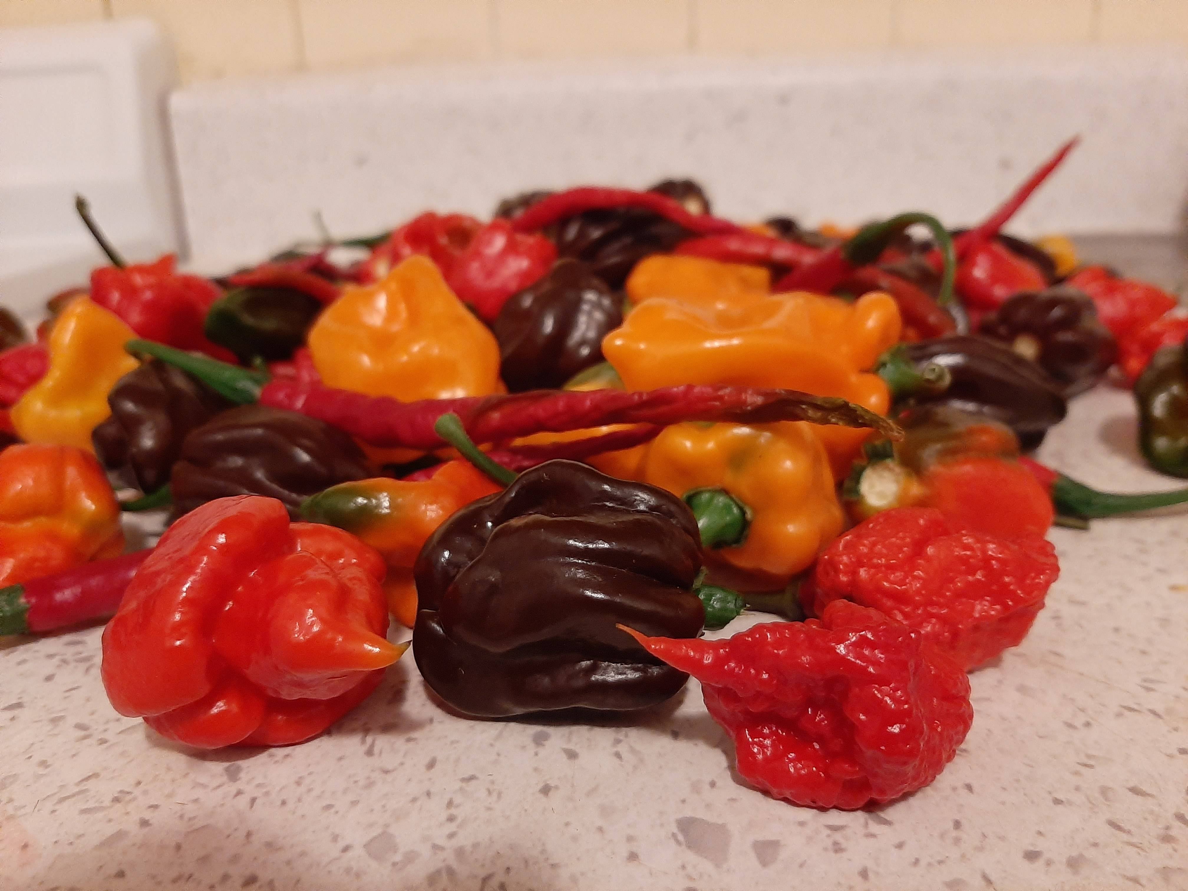 My most recent haul of reapers, scorpions, chocolate and regular orange habaneros! Chilichili foodChili RecipesRecipeRedditReddit SpicySpicyspicy foodspicy recipes
