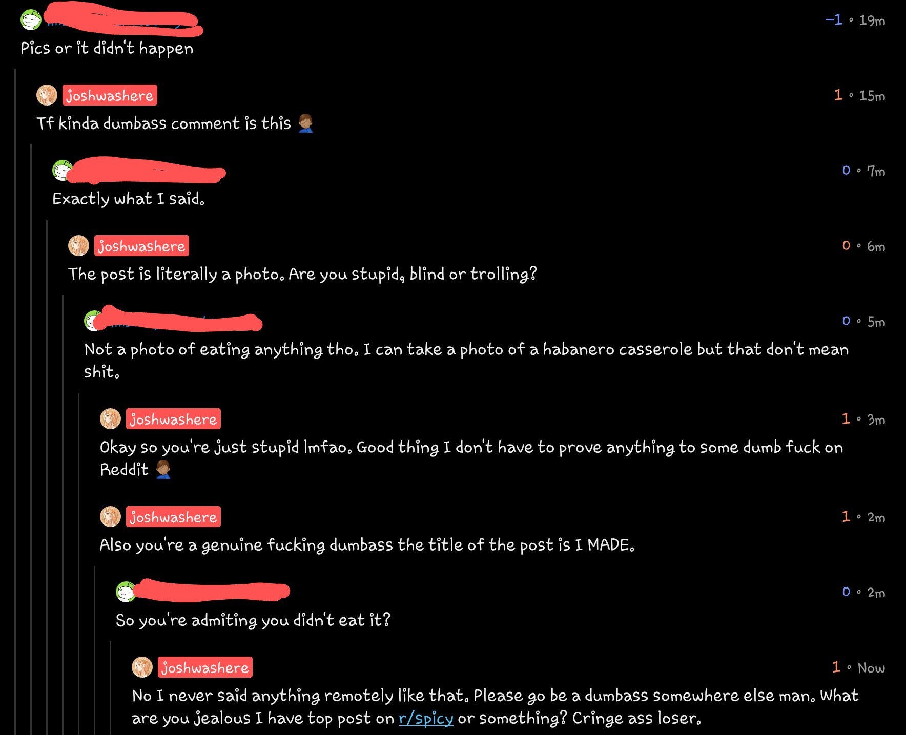 According to this interesting person every post on this sub is null and void because you didn’t post a picture/video of you eating it smh.