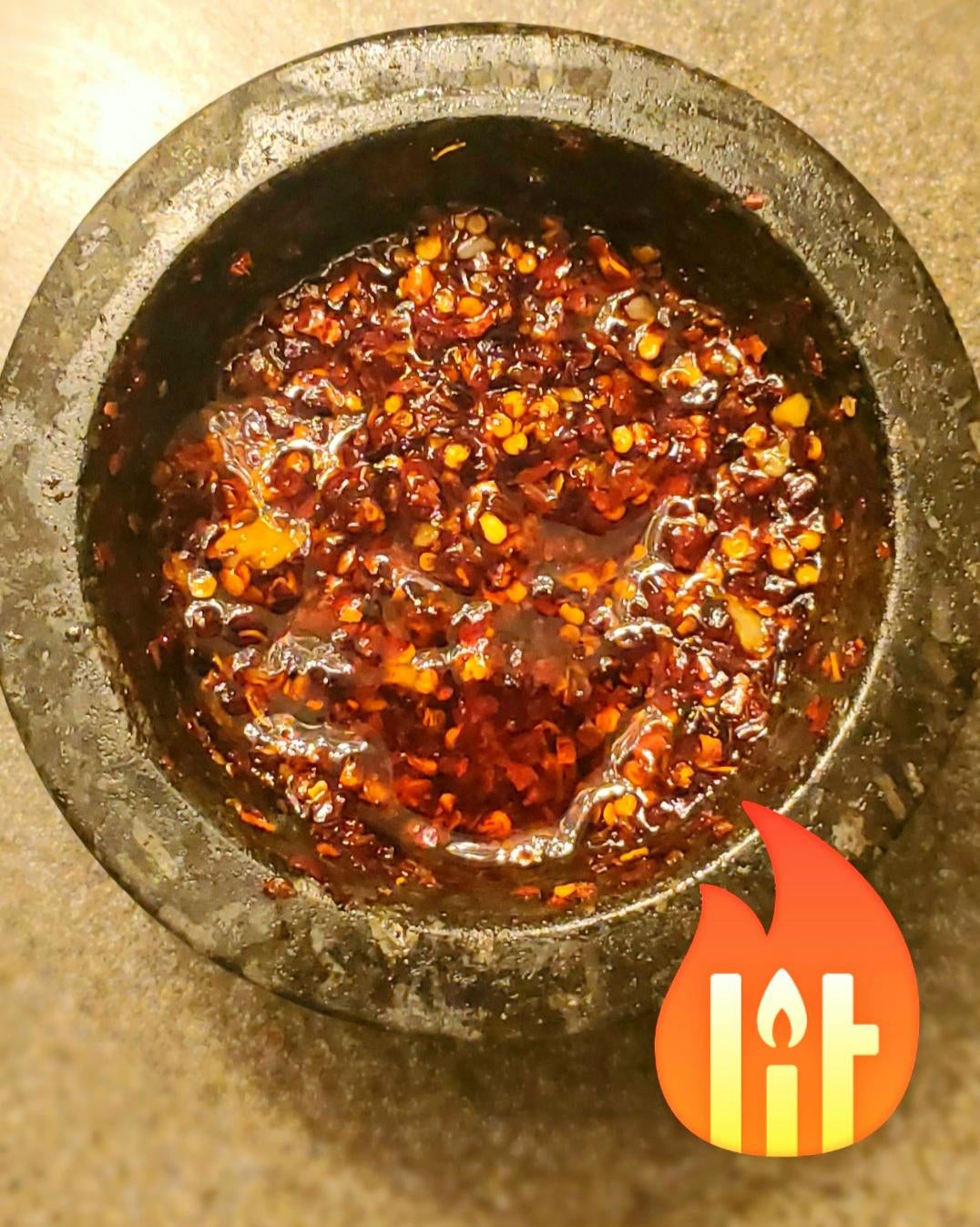 Just came across this subreddit and thought I’d share my homemade chili garlic oil. I use both red pepper flakes and fresh hawaiian chili peppers to get the right amount of spice. This stuff goes on everything.