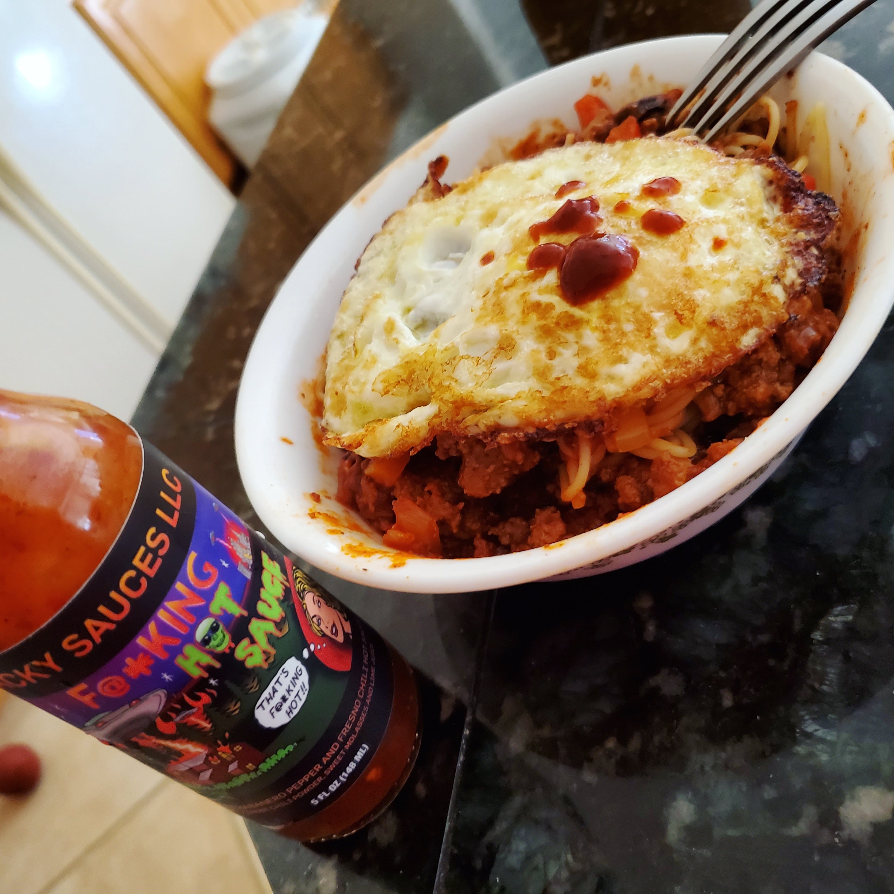 Make leftovers great again. Leftover spaghetti with a fried egg on top and hotsauce Chilichili foodChili RecipesRecipeRedditReddit SpicySpicyspicy foodspicy recipes