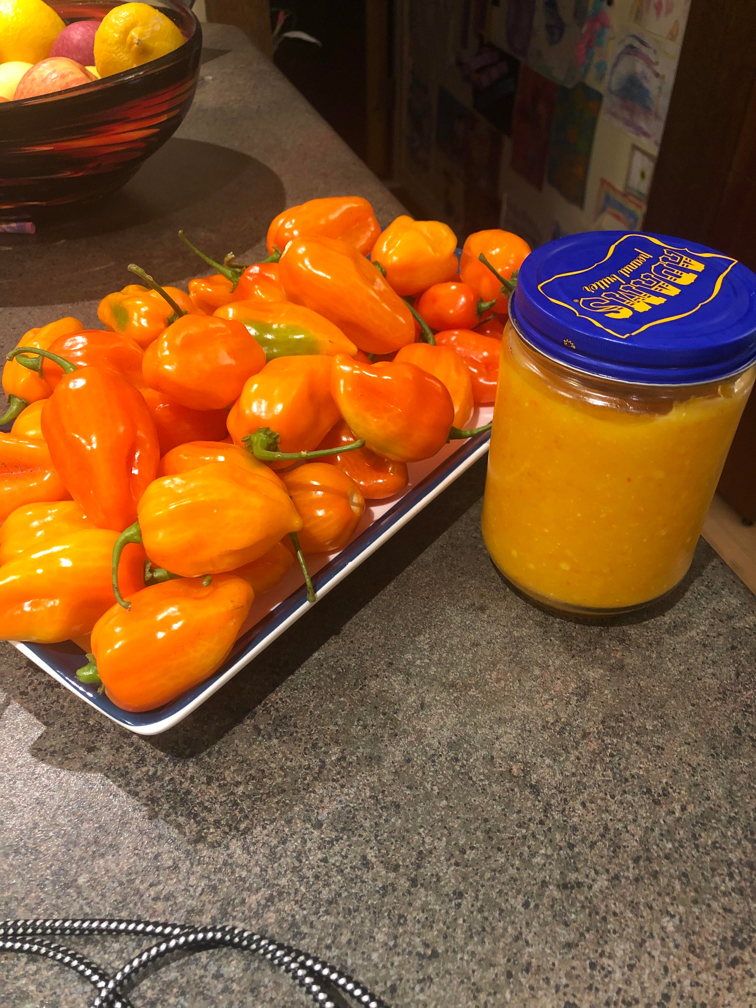 First batch of hot sauce this season. Mango and habanero with fresh ginger, garlic, onion, lime juice, and apple cider vinegar. So tasty and plenty spicy!