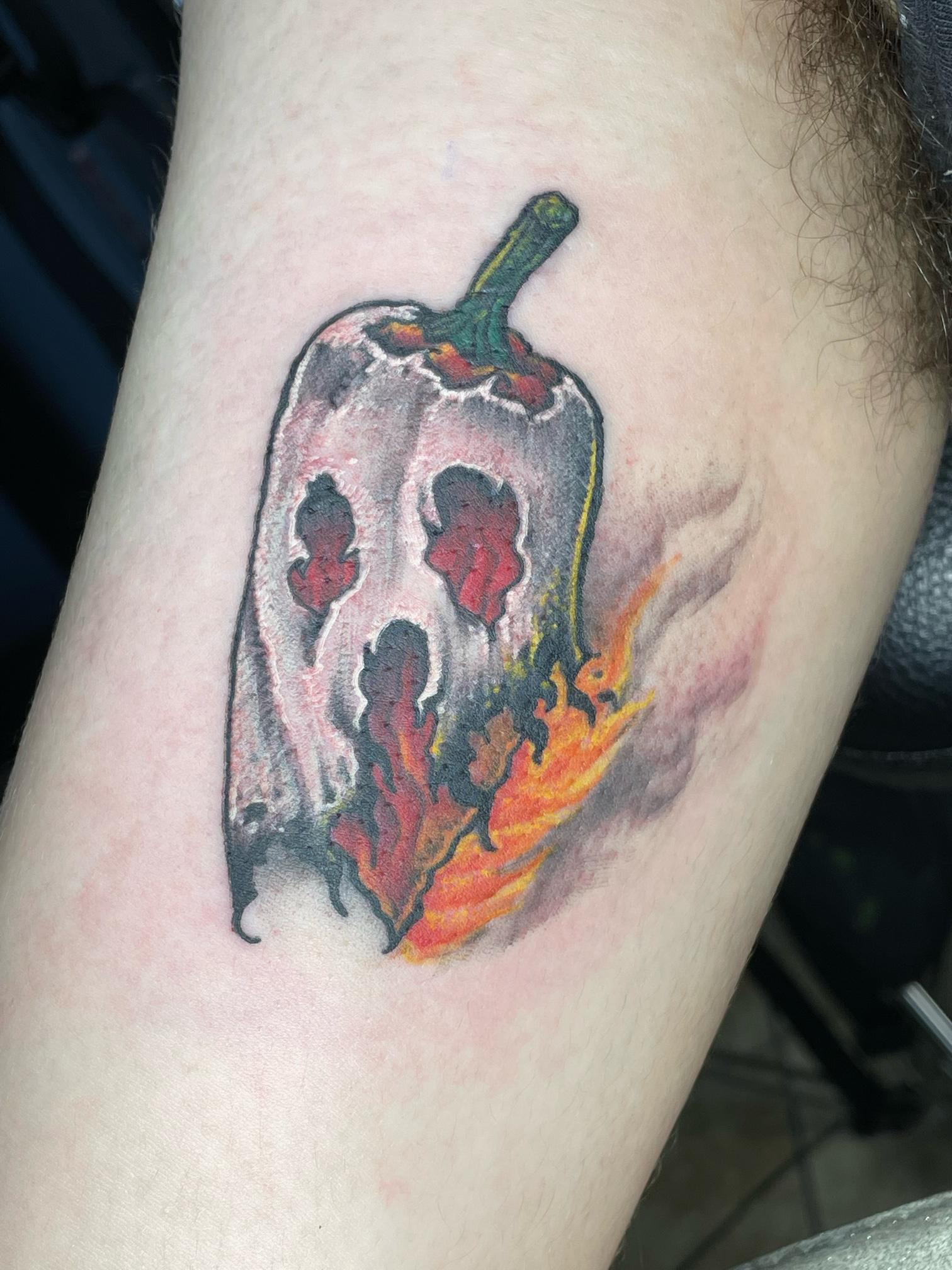 New ghost pepper tattoo by Doc Undead @ Graves Ink Tattoo Studio in San Antonio, Texas. Chilichili foodChili RecipesRecipeRedditReddit SpicySpicyspicy foodspicy recipes