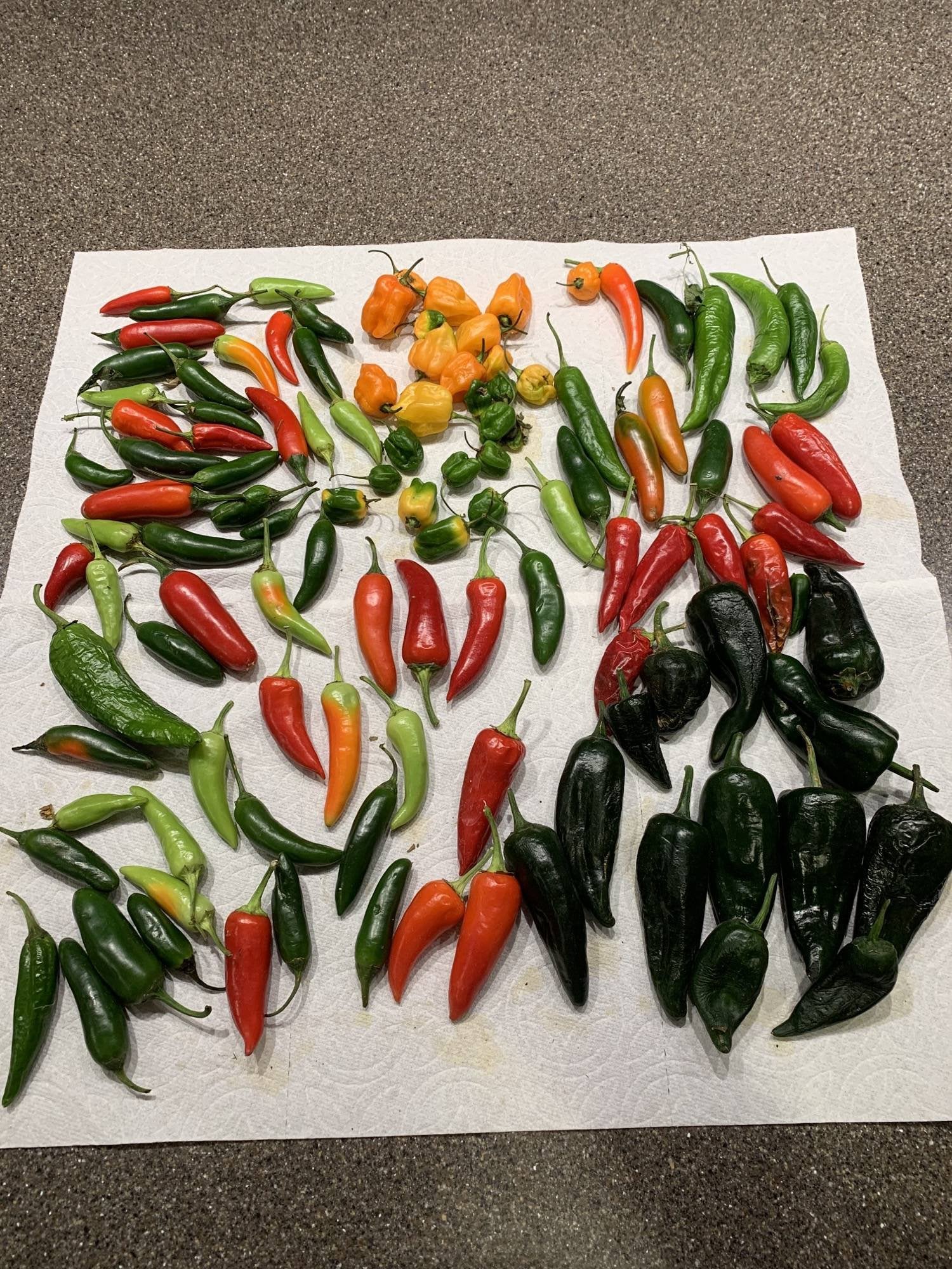 Our pepper harvest this year. Still trying to decide what to do with them all Chilichili foodChili RecipesRecipeRedditReddit SpicySpicyspicy foodspicy recipes