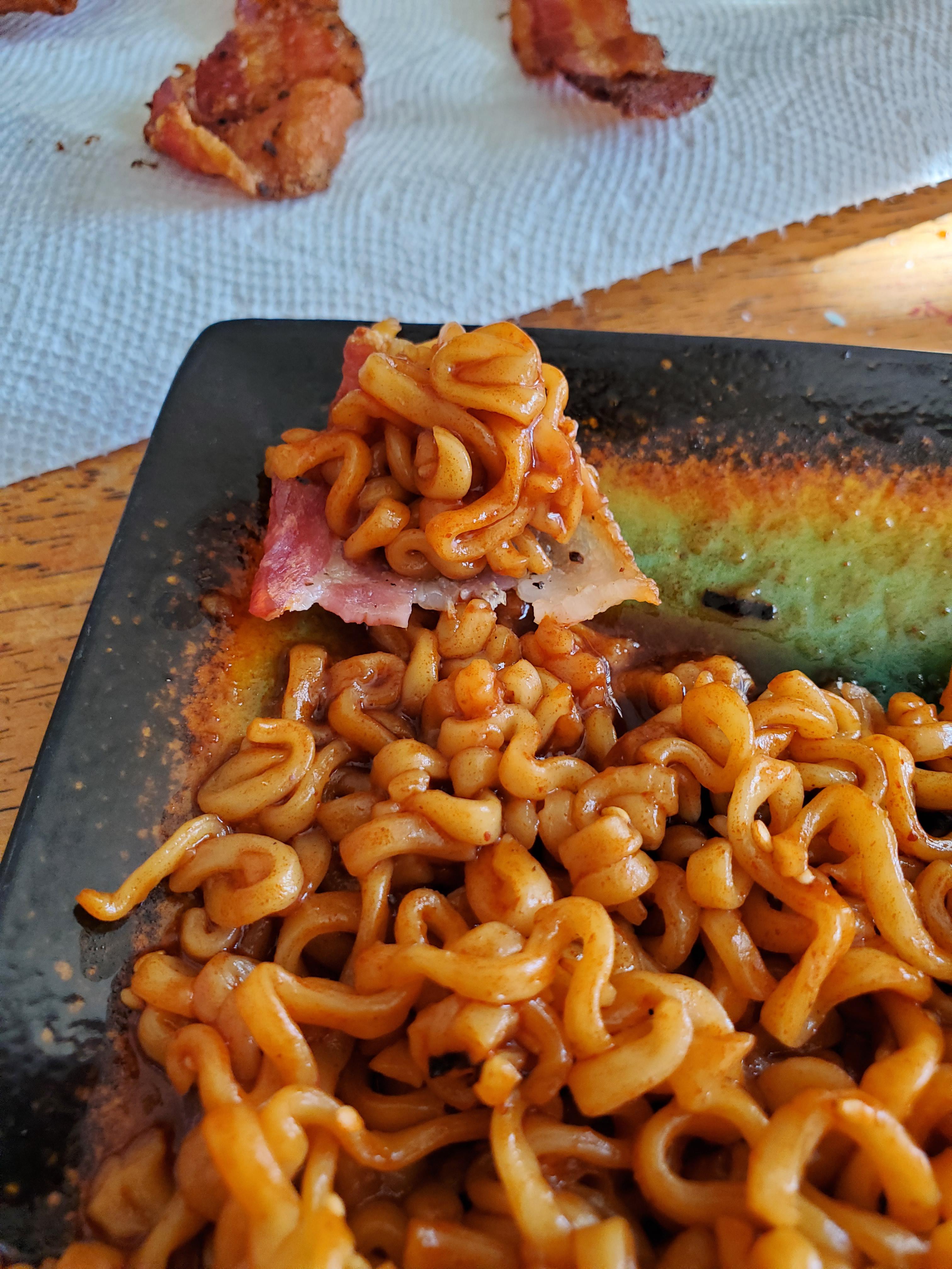 Using bacon as a scoop for Samyang ramen