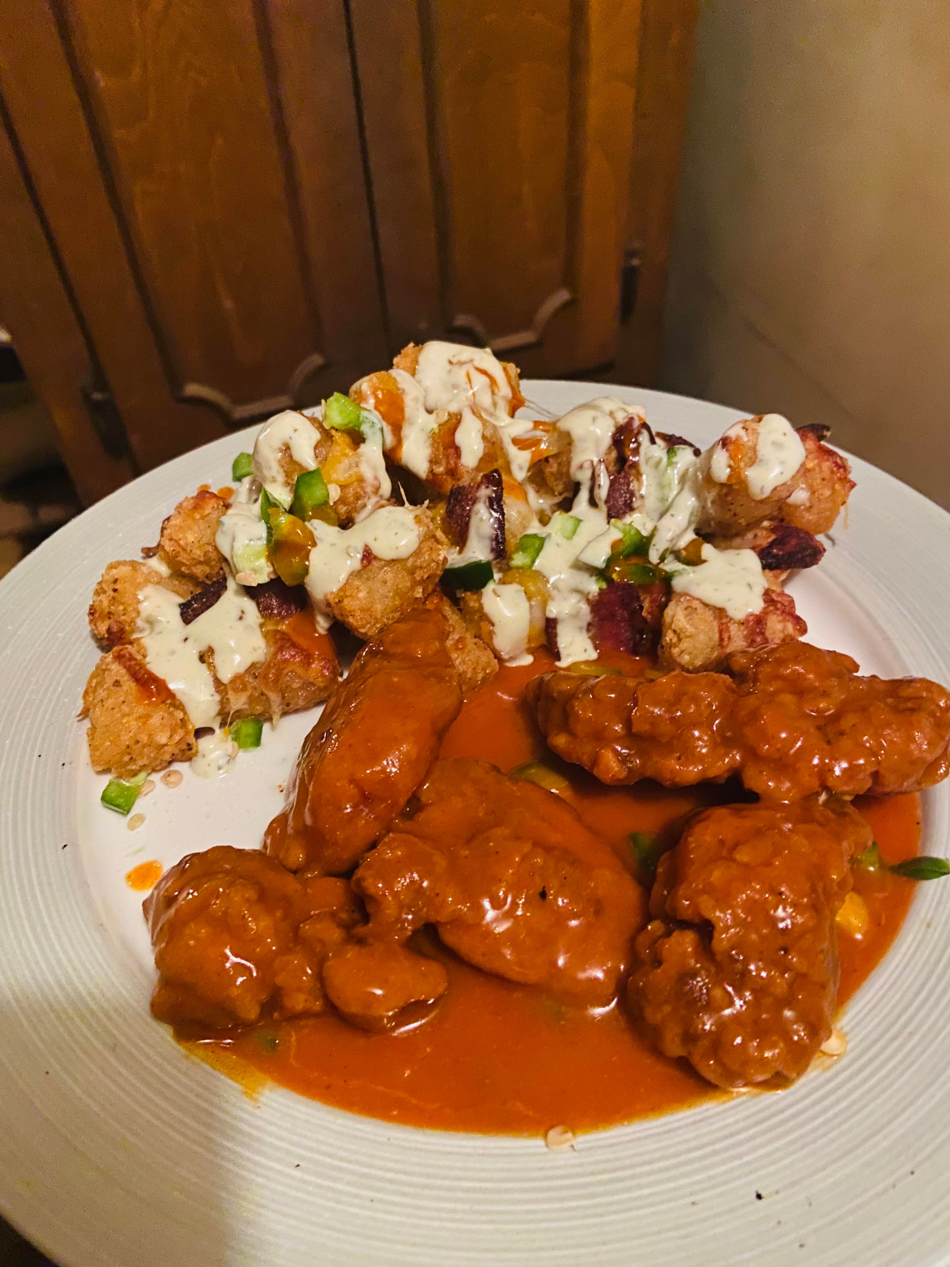 Buffalo chicken tenders & loaded tater tots Chilichili foodChili RecipesRecipeRedditReddit SpicySpicyspicy foodspicy recipes