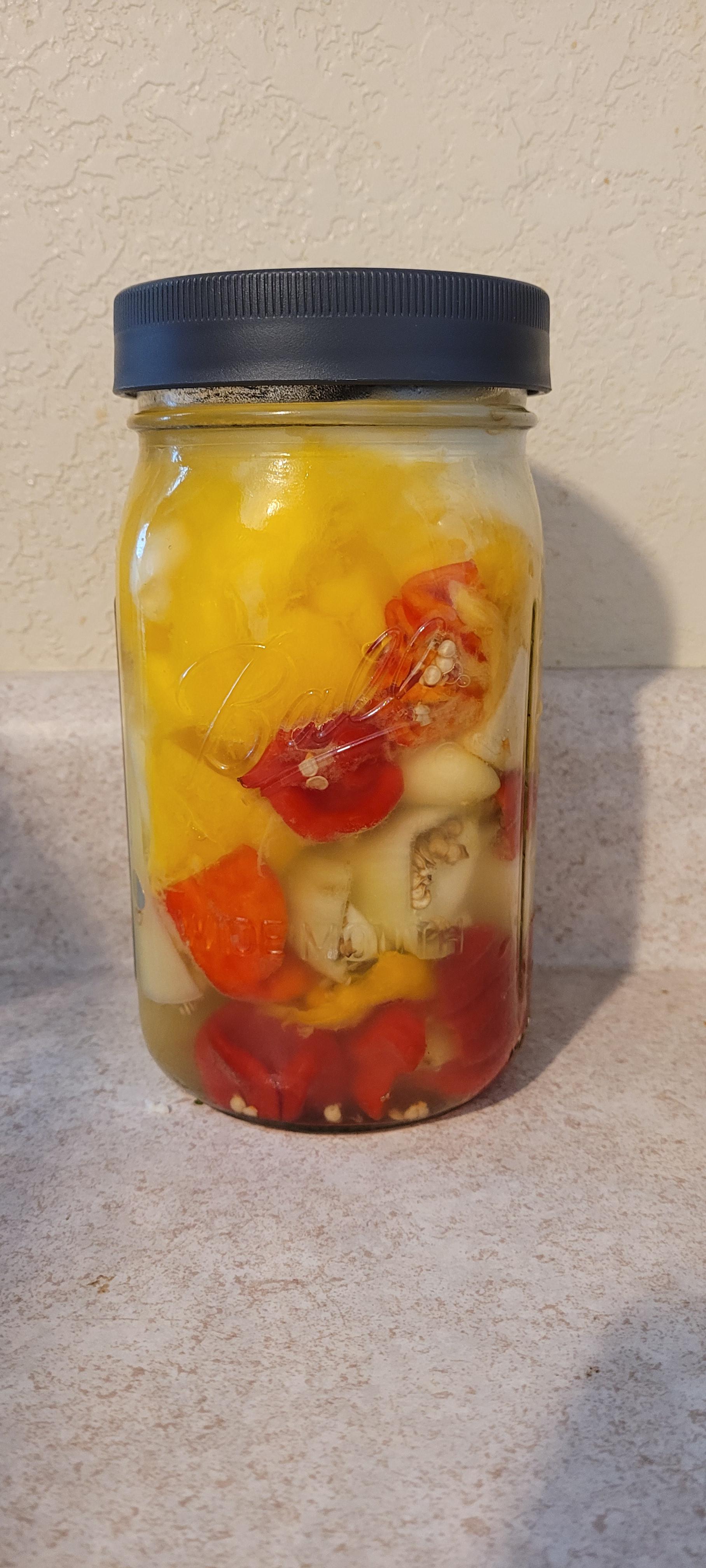 First time fermenting scorpion peppers for hot sauce. See ya’ll in 2.5 weeks!