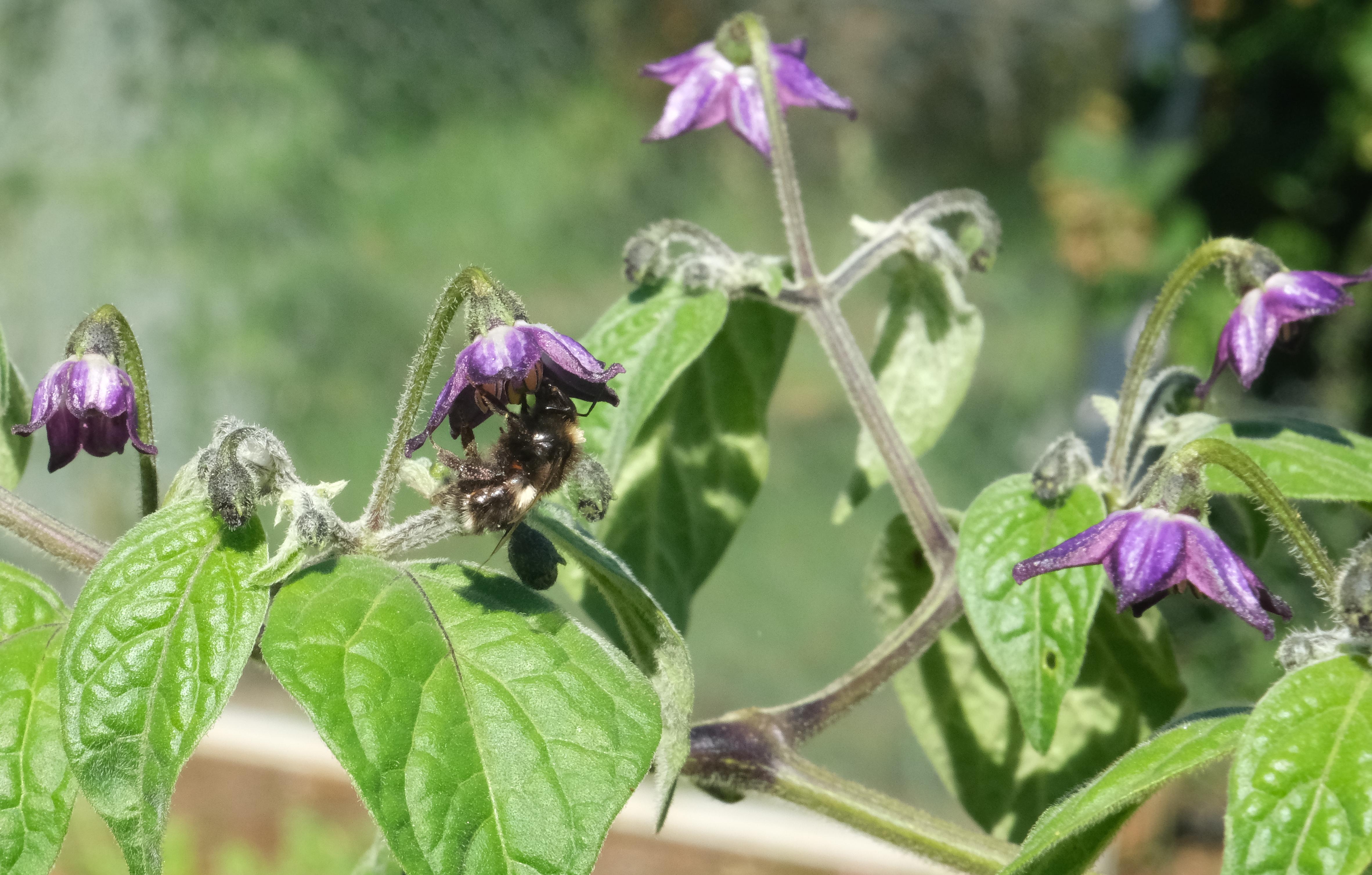 Bumble bee pollinating Rocotto Chilli plant, Tasmania, Australia. Prolific flowers but a late season means I will probably get quite a few chillis but mostly green.