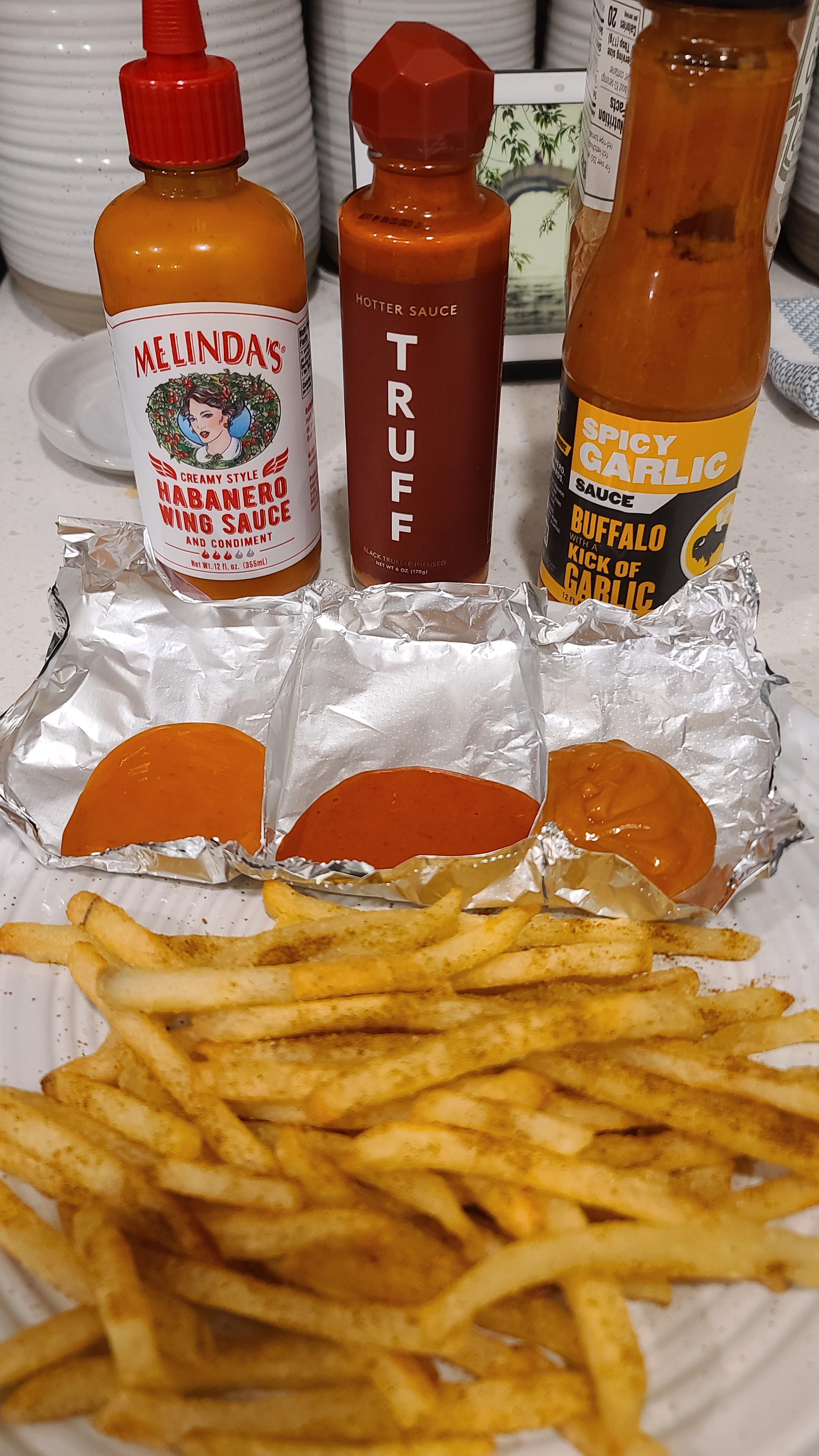 My ingenious idea for my hot sauce boat… Foil! Also some of my favorite sauces đŸ™‚ Chilichili foodChili RecipesRecipeRedditReddit SpicySpicyspicy foodspicy recipes