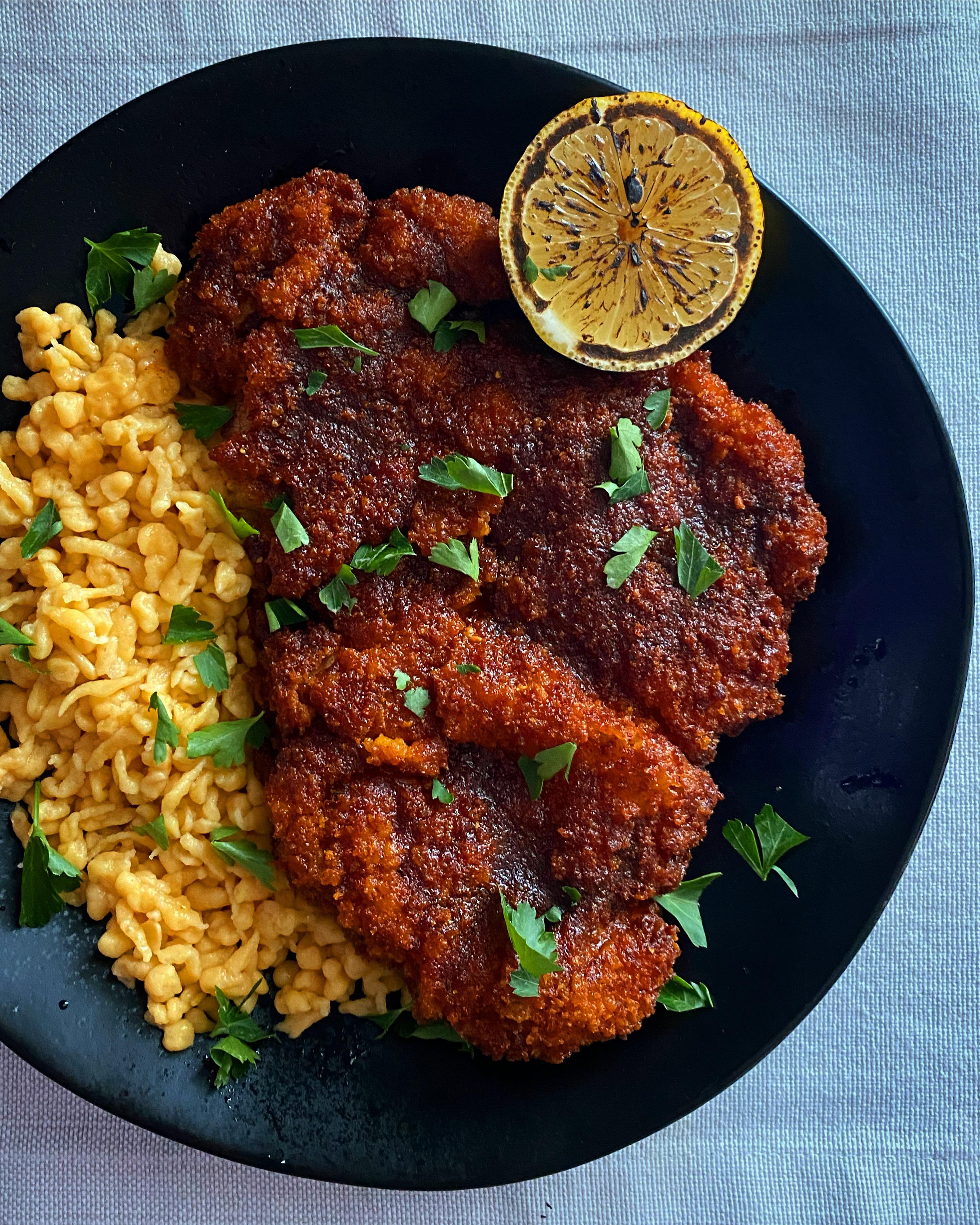 Nashville Hot Pork Schnitzel and Hot Honey Spaetzle Chilichili foodChili RecipesRecipeRedditReddit SpicySpicyspicy foodspicy recipes