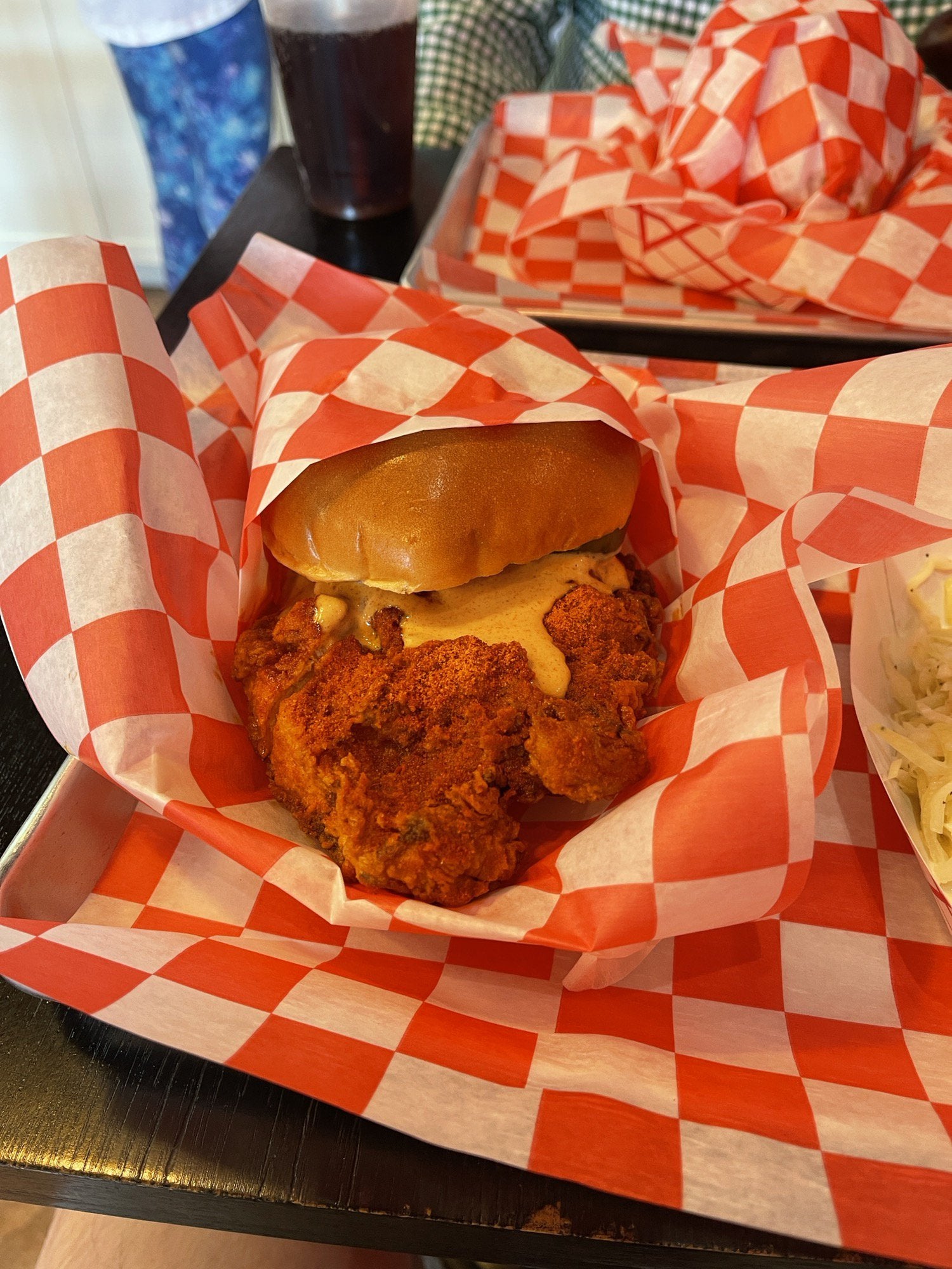 Angry Hot Chicken Sando from Hangry Joe’s in Herndon, VA. Waiver needed to eat it, I could only get a few bites down, it is legit.