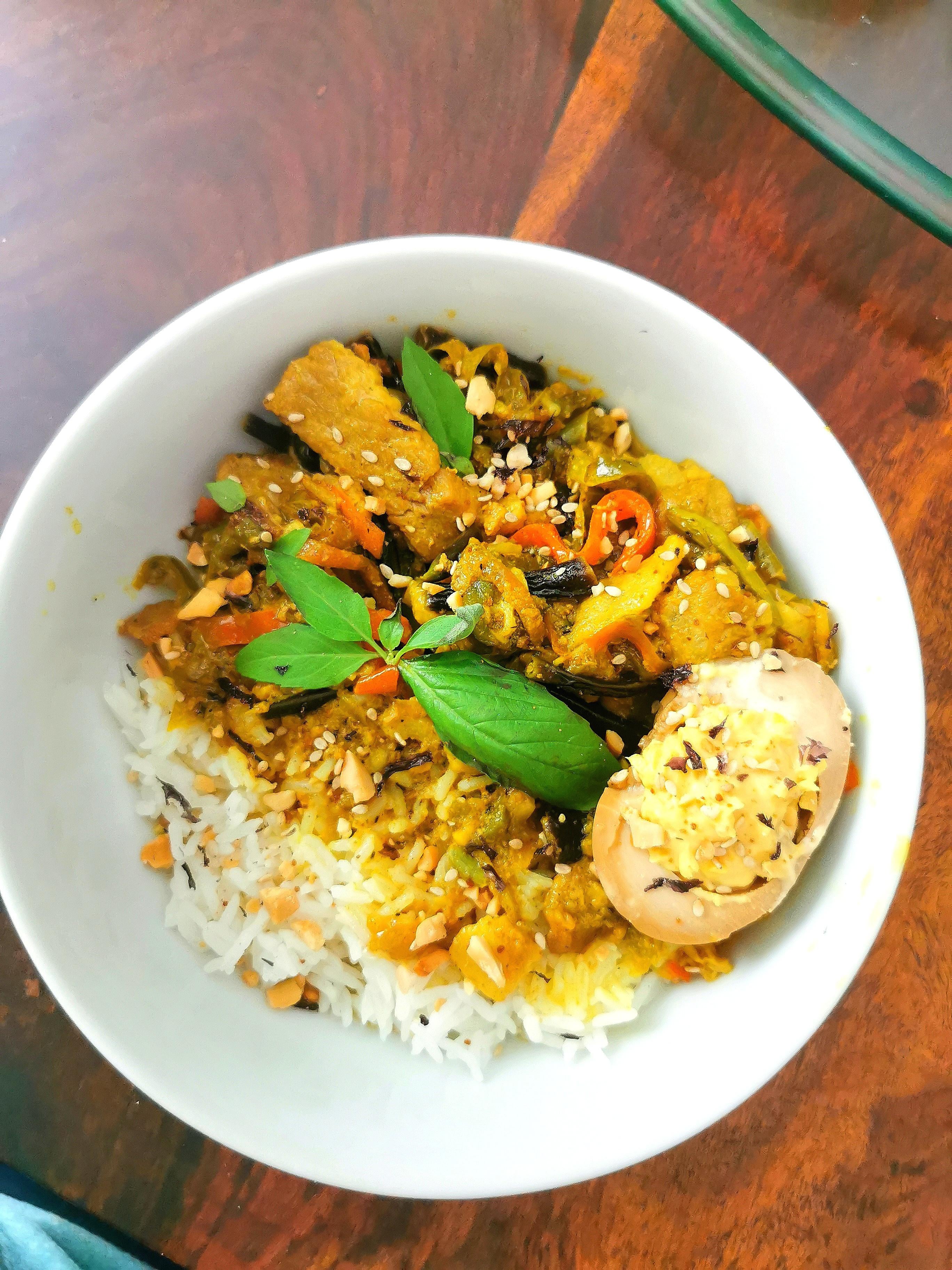 Thai green curry, a deviled soy marinated egg, and rice to soak it all in. Chilichili foodChili RecipesRecipeRedditReddit SpicySpicyspicy foodspicy recipes