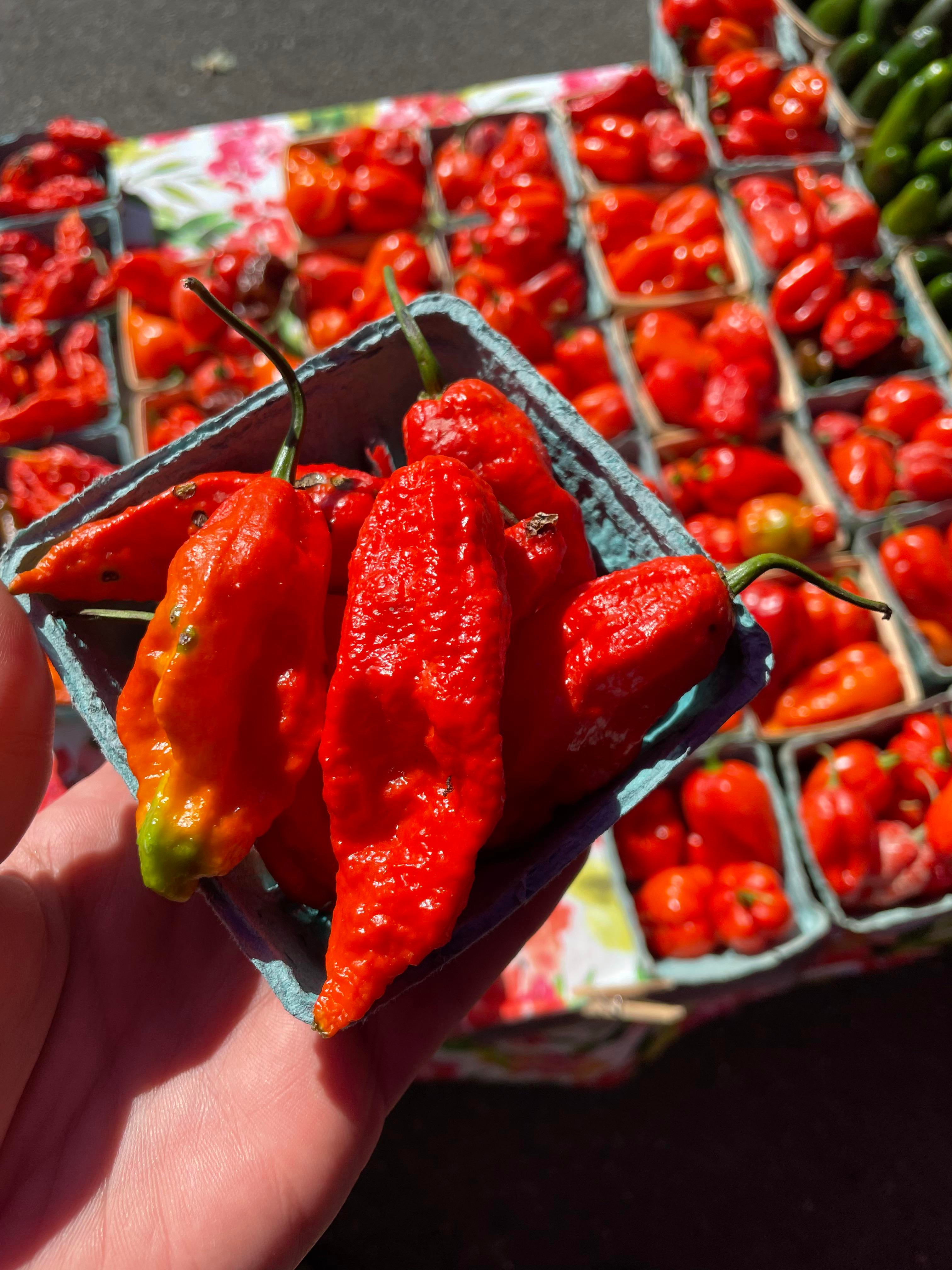 Farmers markets are a blessing. These Ghost peppers are going to hurt so good! Chilichili foodChili RecipesRecipeRedditReddit SpicySpicyspicy foodspicy recipes