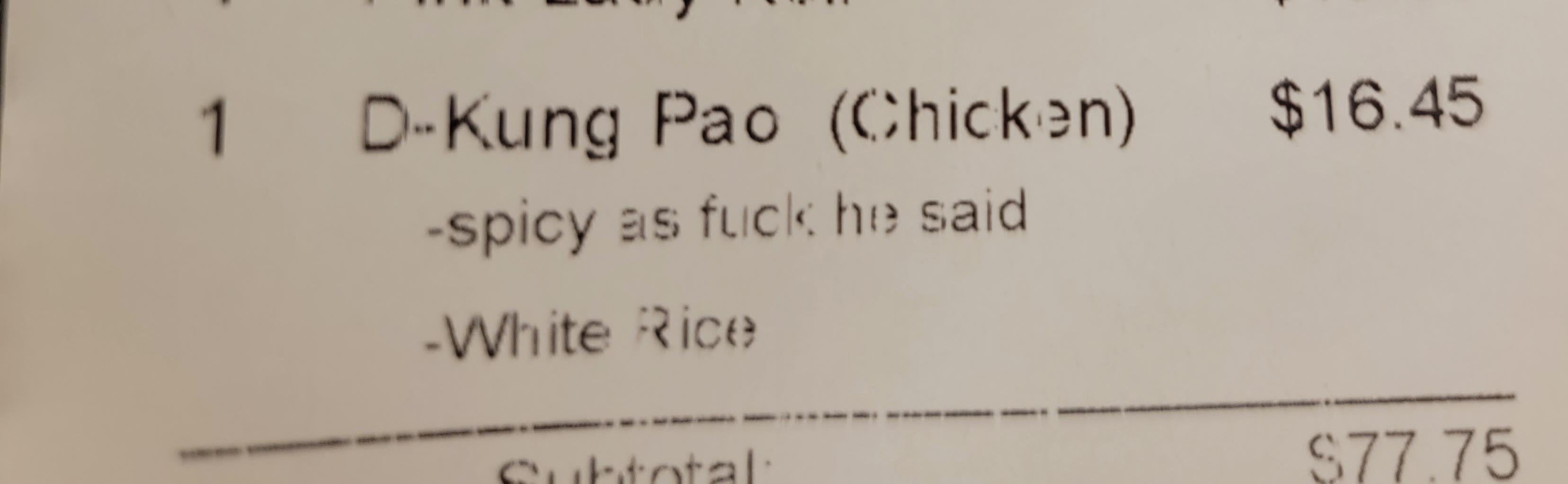 Not my exact wording, but my waitress gets me… and learned the hard way that communications with her chef print out on the receipts in their new POS system