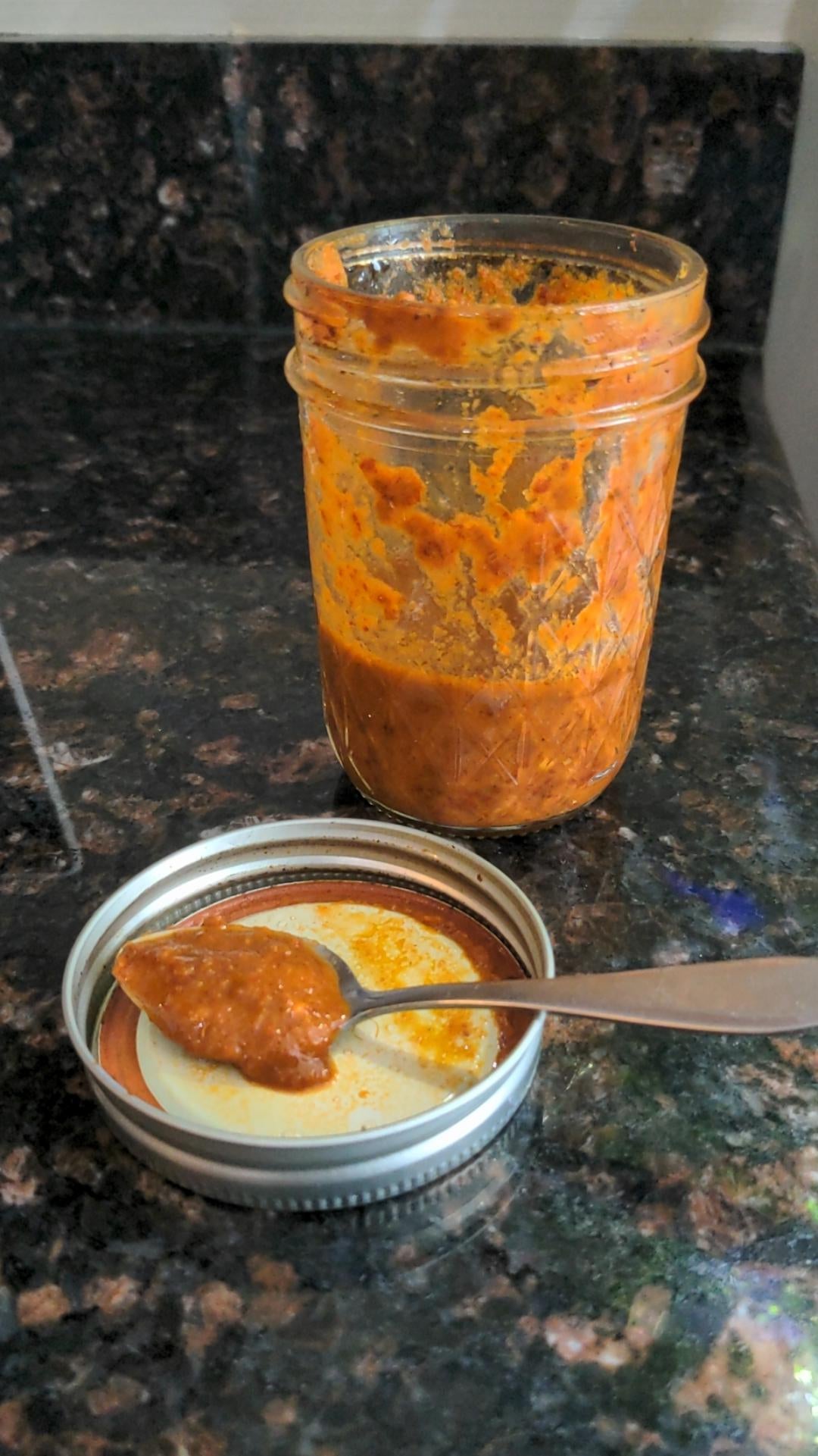 I’ve recently had the pleasure of making some friends from DRC, but I’m told this stuff is all over the place in West Africa. It’s fantastic and one of the spiciest sauces I’ve ever had. The flavor is a little garlicky, a little oniony, and all chocolate scotch bonnet. Highly suggest. 10/10.