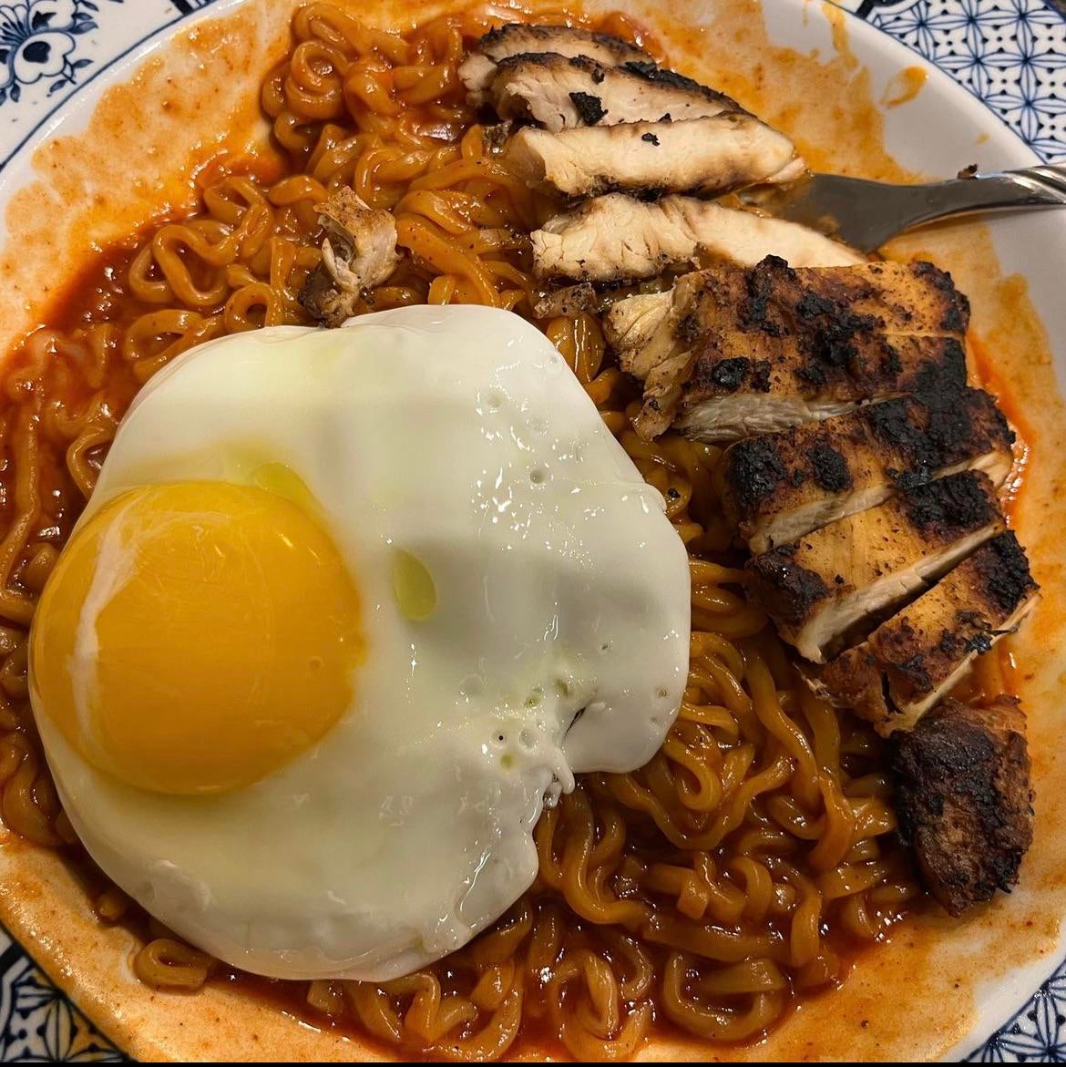 The best way to eat left over chicken! With buldak 2x spicy ramen and a fried egg! Chilichili foodChili RecipesRecipeRedditReddit SpicySpicyspicy foodspicy recipes