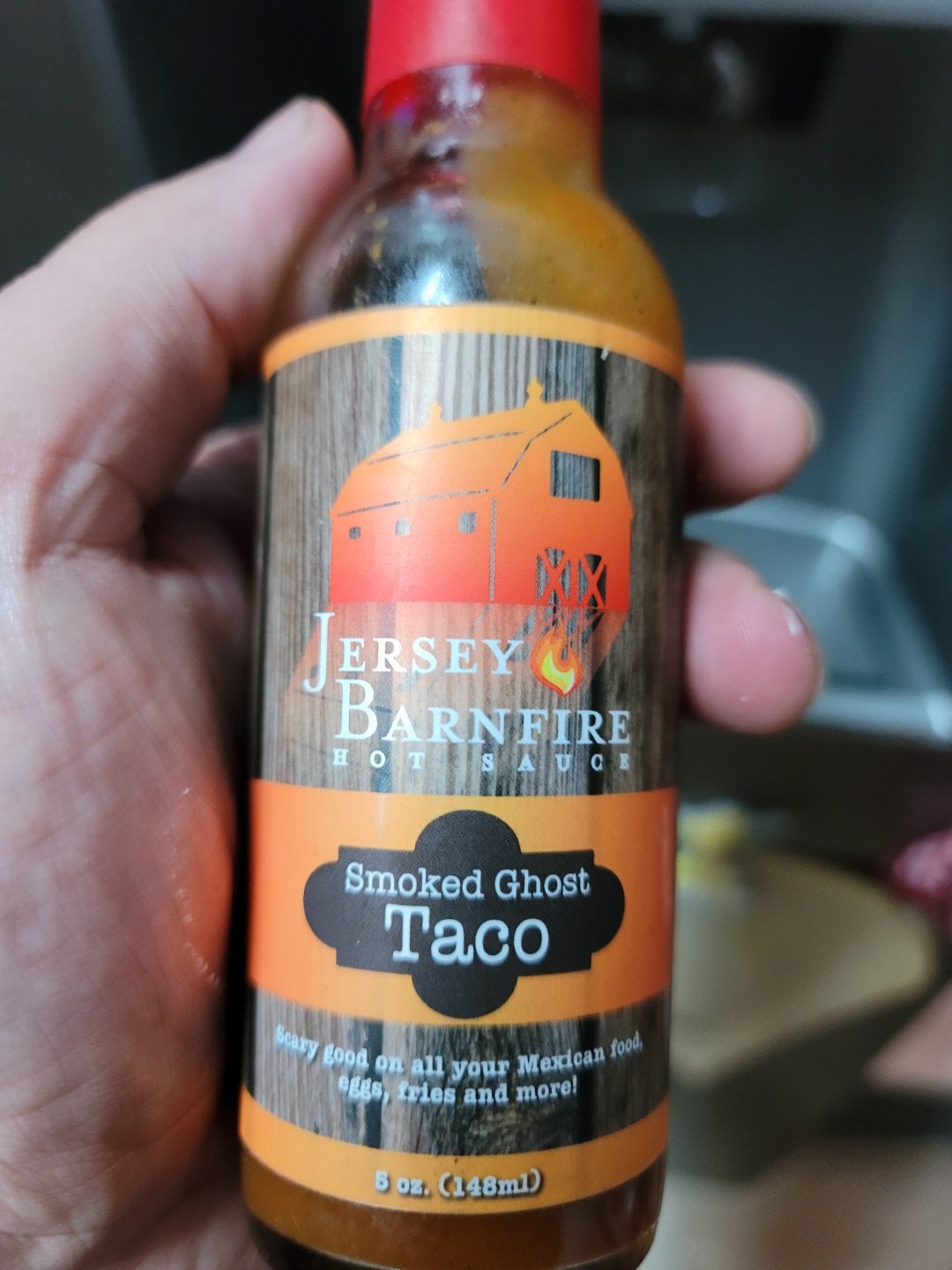 One of the best hot sauces I’ve ever tried. Jersey Barnfire Smoked Ghost Taco. A sustained heat, and incredible flavor. I HIGHLY recommend this!!!